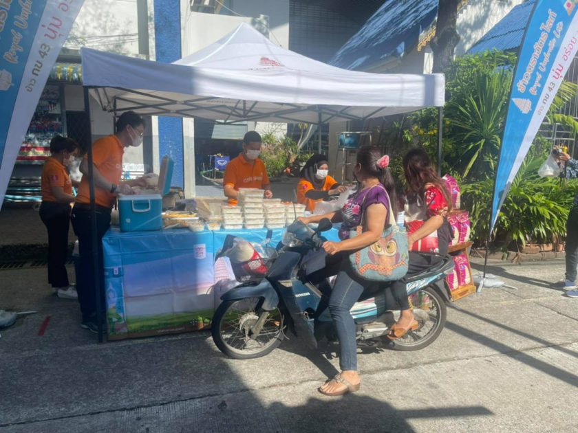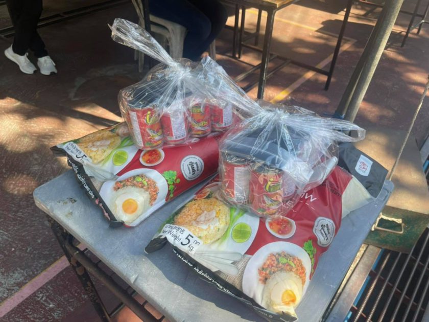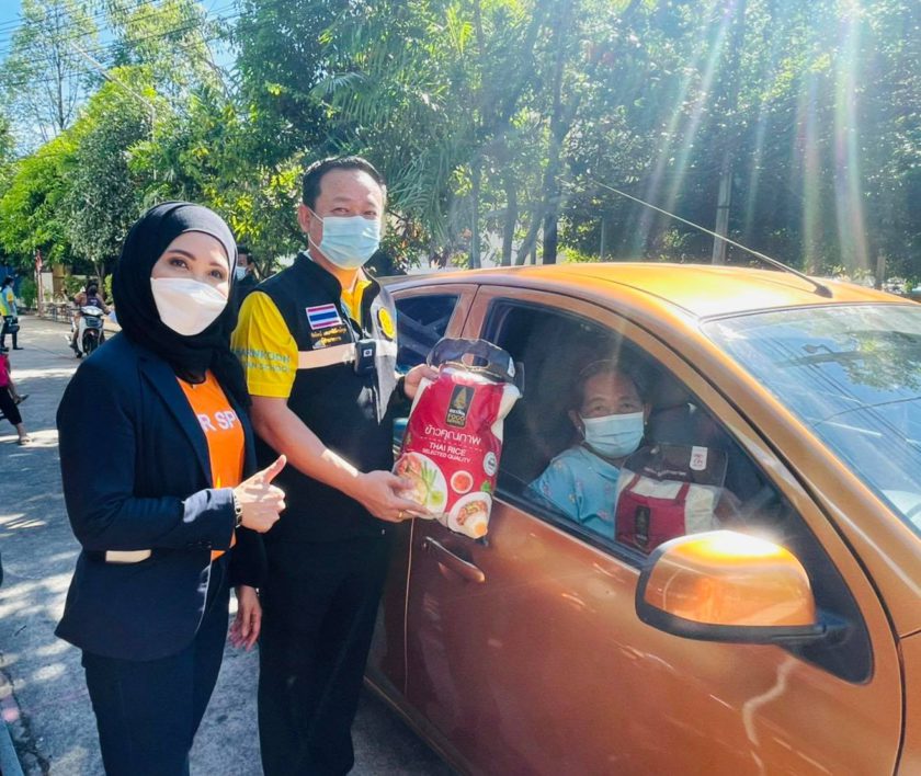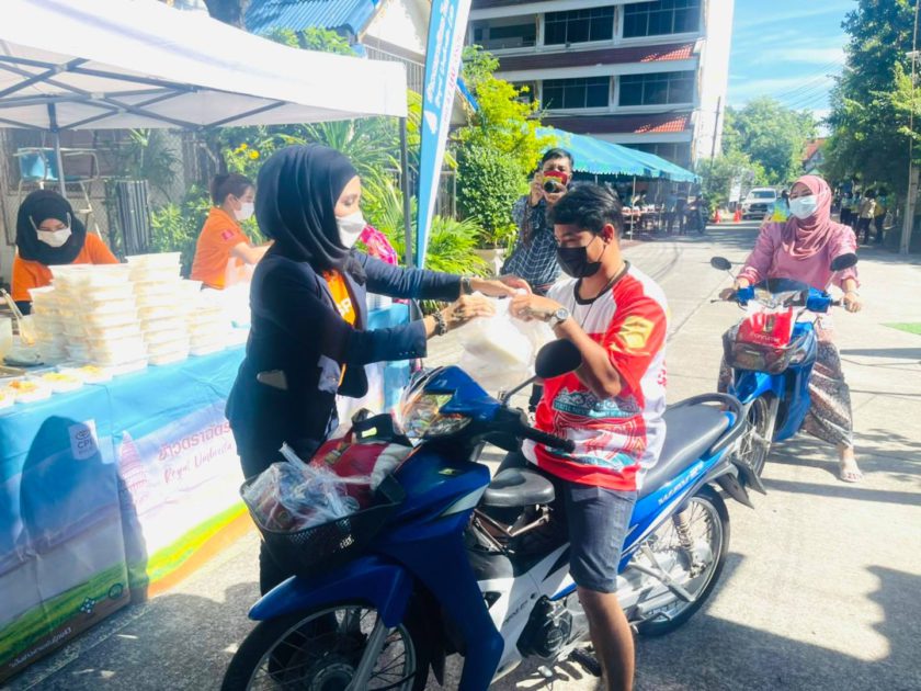 คุณมีนา หวังจิ รองกรรมการผู้จัดการอาวุโส บริษัท ซี.พี.อินเตอร์เทรด จำกัด ร่วมกิจกรรม และแสดงความขอบคุณ คุณพิพัตน์ เสนาพิทักษ์กุล ผู้อำนวยการโรงเรียนสมานคุณวิทยา อ.หาดใหญ่ จ.สงขลา ที่ไว้วางใจเลือกใช้ข้าวตราฉัตรในการจัดทำถุงปันสุข