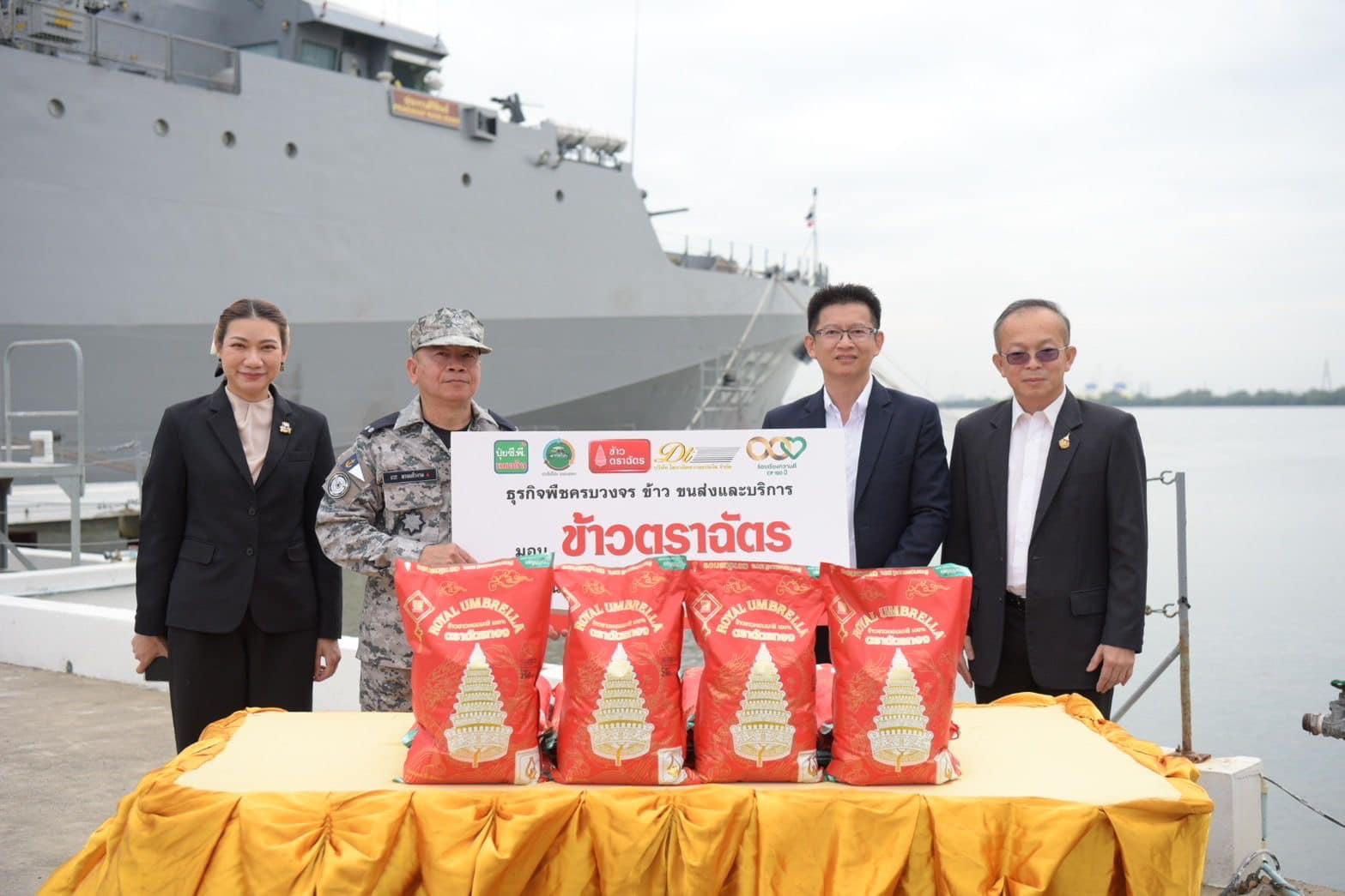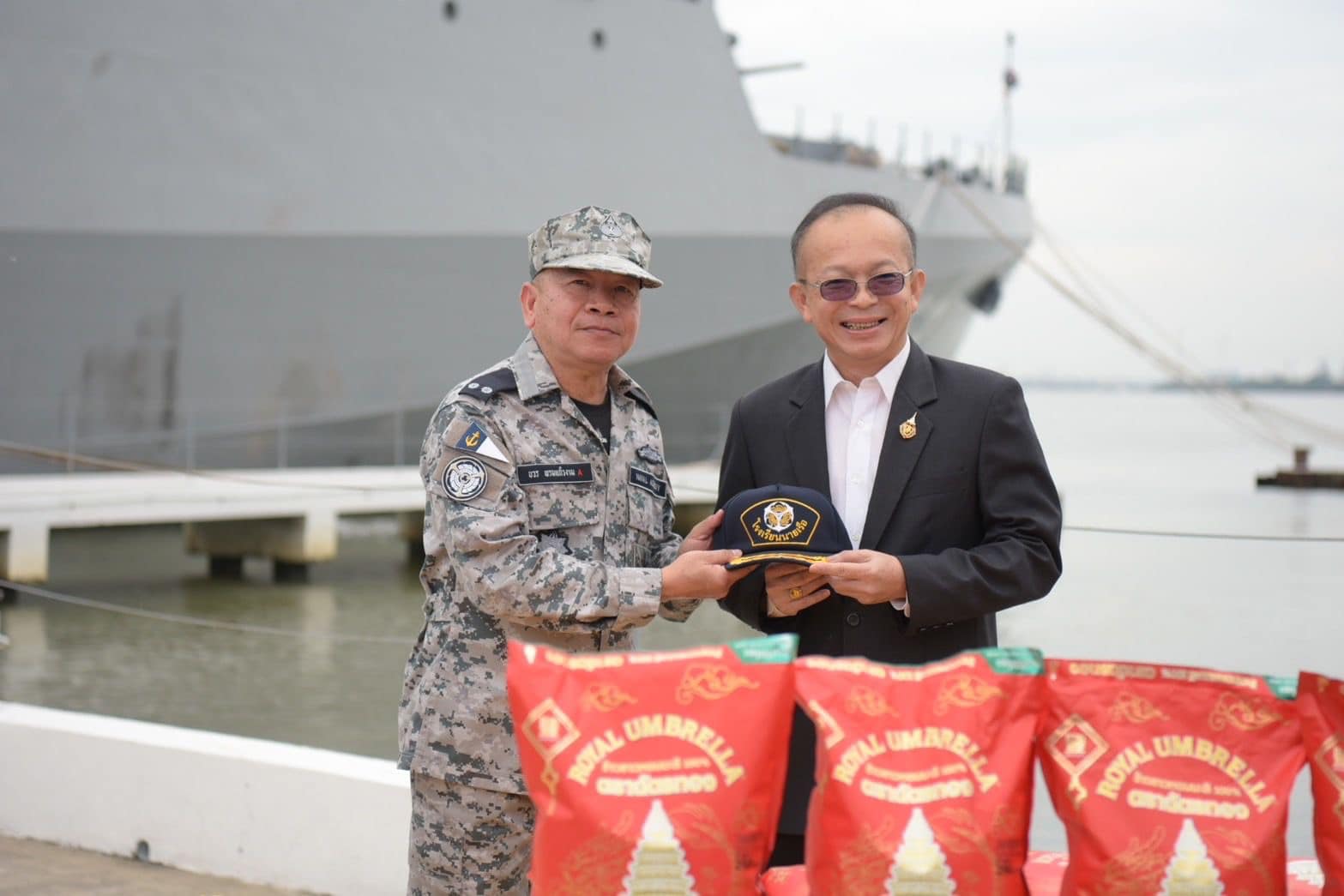 คุณองอาจ จัมปากะนันท์ ผู้ช่วยกรรมการผู้จัดการด้าน ธุรการ ธุรกิจพืชครบวงจร ข้าว ขนส่งและบริการ เครือเจริญโภคภัณฑ์ มอบข้าวสนับสนุนการฝึกภาคปฏิบัติในทะเลต่างประเทศให้แก่โรงเรียนนายเรือ