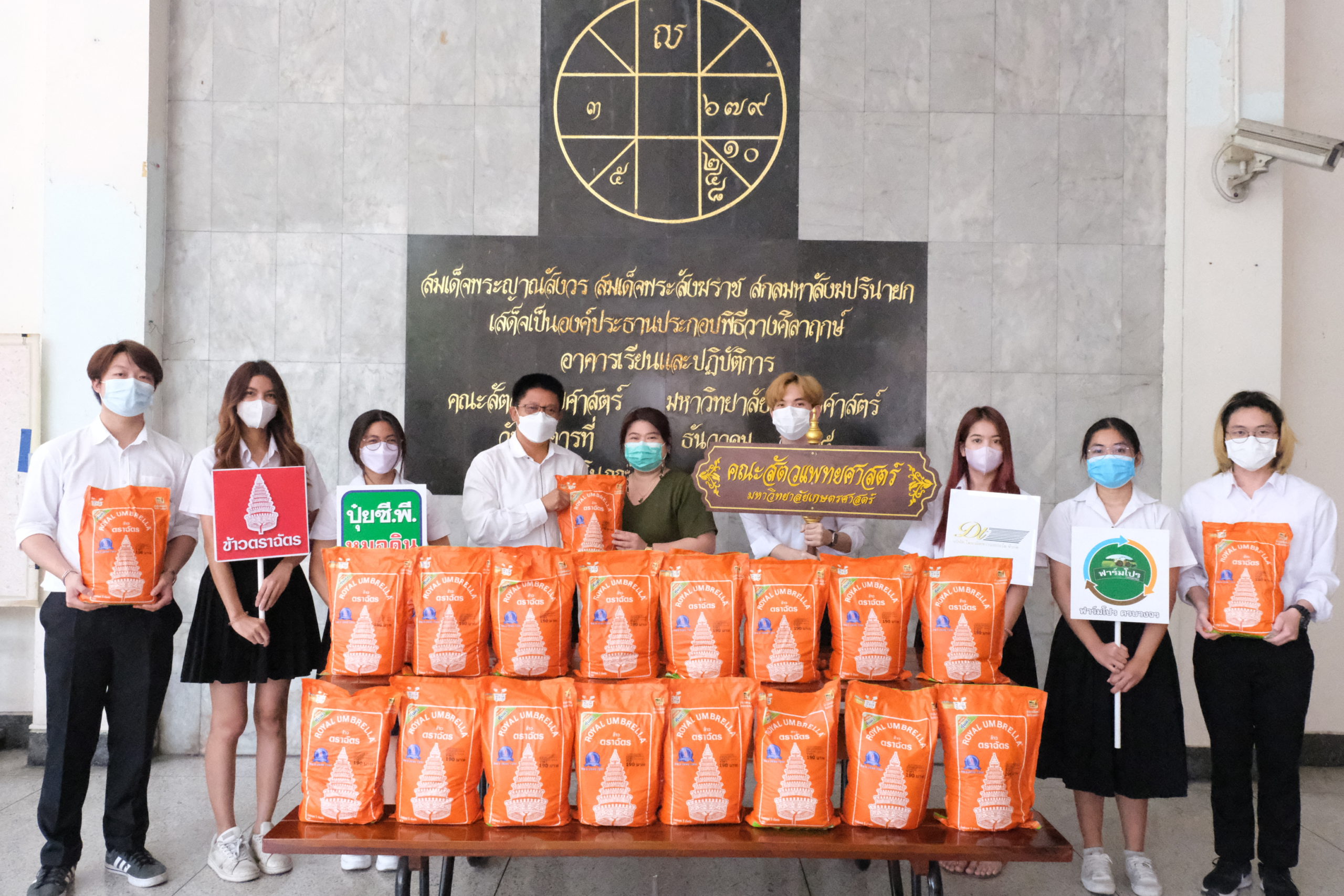 คุณพรหม วรนุตารักษา ผู้จัดการทั่วไป สำนักกิจกรรมเพื่อสังคม ธุรกิจพืชครบวงจร ข้าว ขนส่งและบริการ เครือเจริญโภคภัณฑ์ มอบข้าวตราฉัตร สนับสนุน การออกร้านเกษตรแฟร์ ประจำปี 66 เพื่อหารายได้ออกค่ายอาสาบำเพ็ญสาธารณประโยชน์ต่างๆของกิจการนิสิตคณะสัตวแพทย์