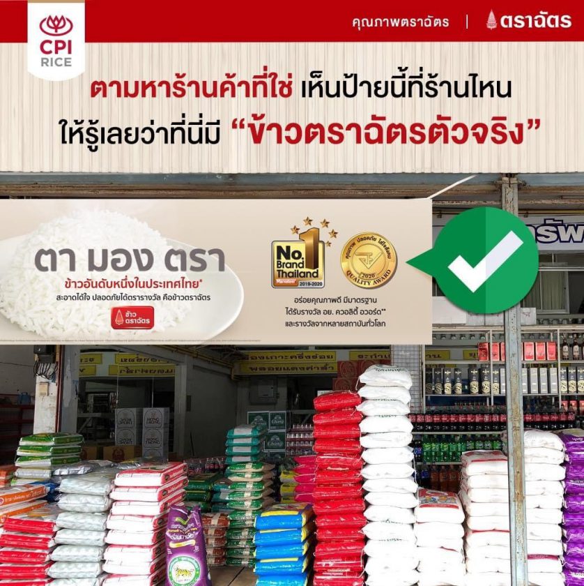 ซื้อข้าว “ฉัตรอุบล” จากร้านค้าที่ติดสื่อ “ตามองตรา” เพื่อรับประกันว่าเป็น Network ของข้าวตราฉัตรเท่านั้น เจอ “ตามองตรา” ปุ๊ป รู้ปั๊ปว่าแท้แน่นอน
