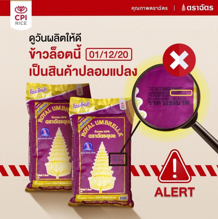 ตรวจสอบ Lot. ผลิตสินค้า หากเป็นวันที่ 01/12/20 ให้รู้ไว้เลยว่าเป็น “สินค้าปลอมแปลง” เพราะของดีมีแค่หนึ่งเดียว เจอ “ฉัตรอุบล” ที่ไหน โปรดระมัดระวังก่อนหยิบลงตะกร้า