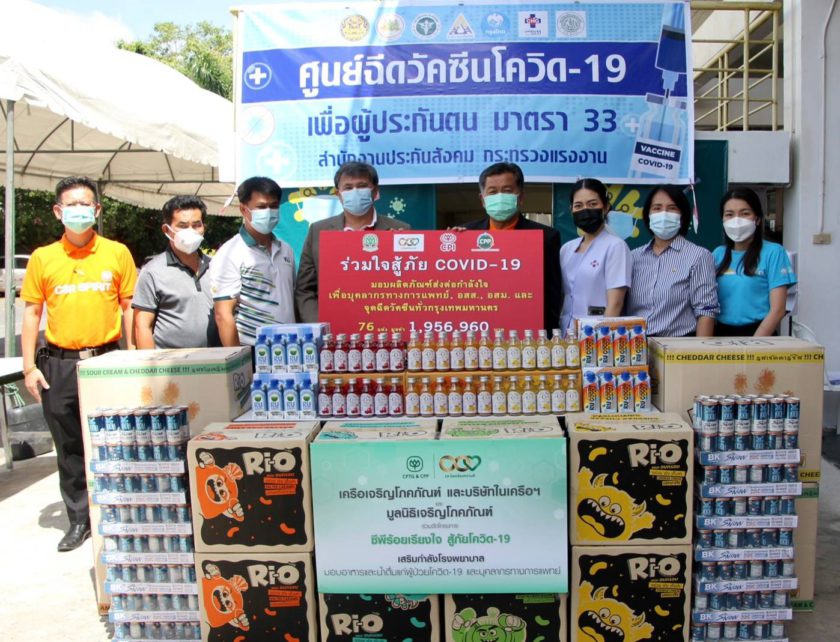มูลนิธิเจริญโภคภัณฑ์ ผนึกกำลังบริษัทในเครือฯ CPI และ CPP ร่วมผนึกกำลังกับ CPF ร้อยเรียงความดี ภายใต้โครงการ “ร่วมใจสู้ภัย COVID-19” สนับสนุนผลิตภัณฑ์ รวมมูลค่า 1,970,640 บาท ให้กับบุคลากรทางการแพทย์และเจ้าหน้าที่ จุดบริการฉีดวัคซีน 46 จุดร่วมกับสำนักงานประกันสังคม ทั่วกรุงเทพฯ