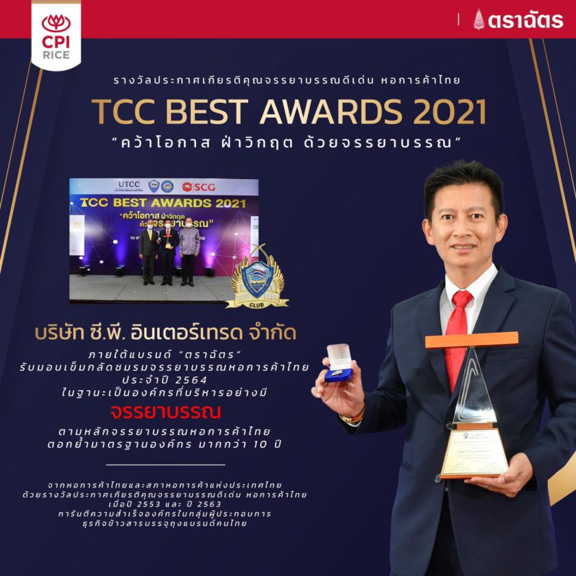 “ซี.พี.อินเตอร์เทรด” ภายใต้แบรนด์ “ตราฉัตร” รับมอบเข็มกลัดชมรมจรรยาบรรณ​หอการค้าไทย ประจำปี 2564 ในฐานะเป็นองค์กรที่บริหารอย่างมีจรรยาบรรณ ตามหลักจรรยาบรรณหอการค้าไทย ตอกย้ำมาตรฐานองค์กร มากกว่า 10 ปี
