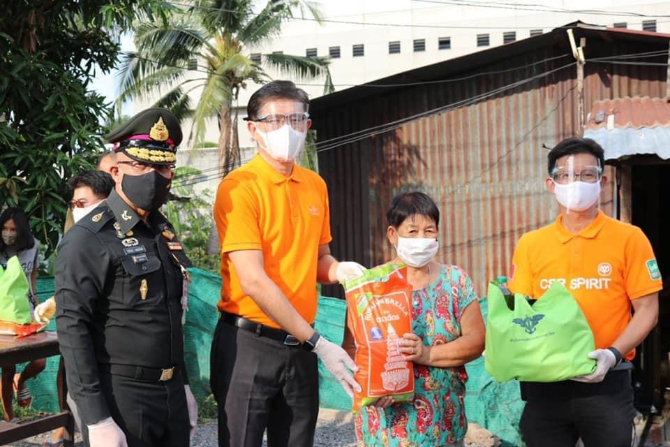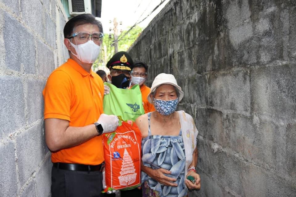 พล.อ.นภนต์ สร้างสมวงษ์ รองปลัดกระทรวงกลาโหม และนายฐิติ ลุจินตานนท์ ประธานเจ้าหน้าที่ฝ่ายปฏิบัติการ ธุรกิจข้าวและอาหาร เครือซีพี มอบข้าวตราฉัตร และถุงยังชีพให้กับประชาชน ภายใต้โครงการ “ร่วมใจสู้ภัย COVID-19” ณ ชุมชนเกาะหนู ซอยงามวงศ์วาน 47 แยก28