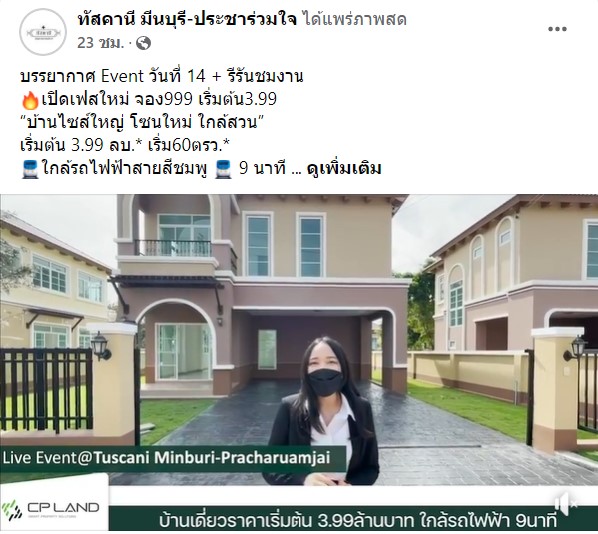 Learning by doing หลังจากได้เรียนรู้โครงการเถ้าแก่น้อย หลักสูตรพัฒนาผู้นำเพื่ออนาคต เครือเจริญโภคภัณฑ์ หรือ CP Future Leaders Development Program (FLP) เพื่อสร้างผู้ประกอบการรุ่นใหม่ที่มีทักษะความเป็นผู้นำควบคู่กับทักษะการพัฒนาไอเดียทางธุรกิจ จากพี่ๆ สปอนเซอร์ ซี.พี.แลนด์ ตั้งแต่กันยายน 2564 น้องเถ้าแก่น้อย FLP 10 ธุรกิจบ้านจัดสรร ซี.พี.แลนด์ น้อง ๆ หนุ่มสาวรุ่นใหม่ 5 คน มีโอกาสลงพื้นที่จริง จัดกิจกรรมการตลาดและส่งเสริมการขาย พร้อม Facebook Live ในคอนเซ็ปต์ “Tuscani Touch the Pure nature” เมื่อวันที่ 13-14 พฤศจิกายน 2564 ณ โครงการทัสคานี มีนบุรี-ประชาร่วมใจ 37