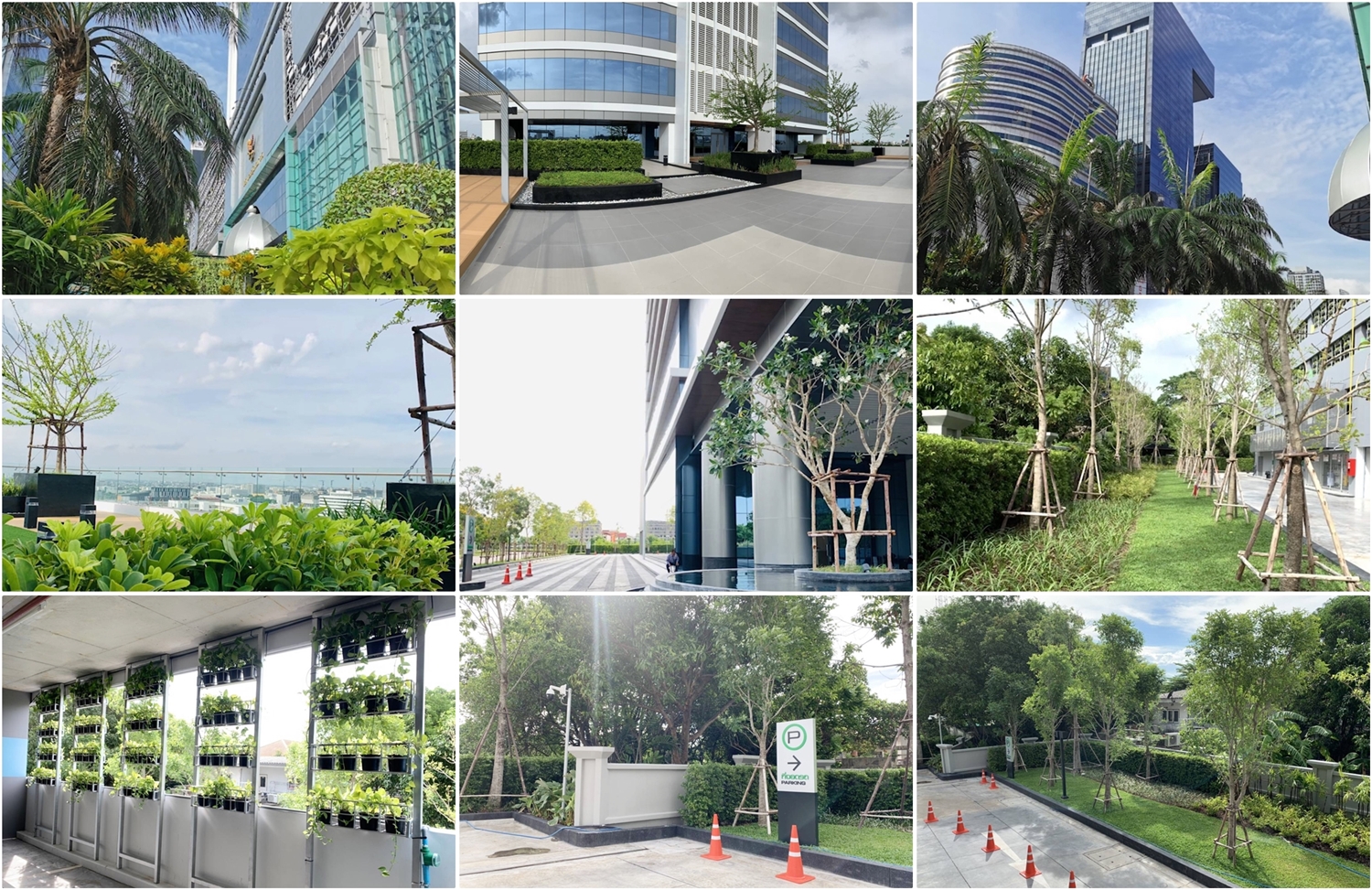 คุณศัลย์ มูลศาสตร์ รองกรรมการผู้จัดการใหญ่ กลุ่มงานบริหารอาคาร บริษัท ซี.พี.แลนด์ จำกัด (มหาชน) อธิบายการจัดการพื้นที่สีเขียวบนอาคารสูงว่า “กลุ่มซีพีแลนด์เป็นกลุ่มธุรกิจพัฒนาด้านอสังหาริมทรัพย์ ด้านนโยบายทางสิ่งแวดล้อม เราดำเนินการสอดคล้องกับเครือเจริญโภคภัณฑ์ ซีพีแลนด์ดูแลเรื่อง การลดโลกร้อน ก๊าซคาร์บอน ก๊าซเรือนกระจกมาโดยตลอด ด้วยการใช้พลังงานอย่างมีประสิทธิภาพ การออกแบบโครงการต่างๆ เราก็จัดการให้มีพื้นที่สีเขียว การปลูกต้นไม้โดยใช้หลักสถาปัตยกรรมเขตร้อน (Tropical Architecture) สร้างบรรยากาศให้เป็นธรรมชาติให้มากที่สุด เป็น Natural ventilation การระบายอากาศทางธรรมชาติ”