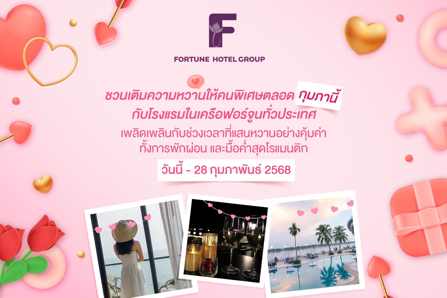 ช่วงเวลาพิเศษในเดือนแห่งความรักนี้ โรงแรมในเครือฟอร์จูน 4 แห่งทั่วประเทศ หนึ่งในกลุ่มธุรกิจของ บริษัท ซี.พี.แลนด์ จำกัด (มหาชน) หรือ CP LAND ขอชวนคุณมาสัมผัสประสบการณ์การพักผ่อนในบรรยากาศสุดพิเศษตลอดเดือนกุมภาพันธ์ 2568 ร่วมสร้างความทรงจำกับคนที่คุณรักในห้องพักที่ตกแต่งอย่างลงตัว พร้อมบริการที่เต็มไปด้วยความเอาใจใส่ พร้อมโปรโมชั่นพิเศษที่ทำให้คุณและคนสำคัญได้เพลิดเพลินกับช่วงเวลาที่แสนหวานอย่างคุ้มค่า ไม่ว่าจะเป็นการพักผ่อนหรือการสร้างความประทับใจในวันพิเศษ มาเติมเต็มความสุขในวันแห่งความรักกับเราได้ตลอดเดือนกุมภาพันธ์นี้ได้เลย