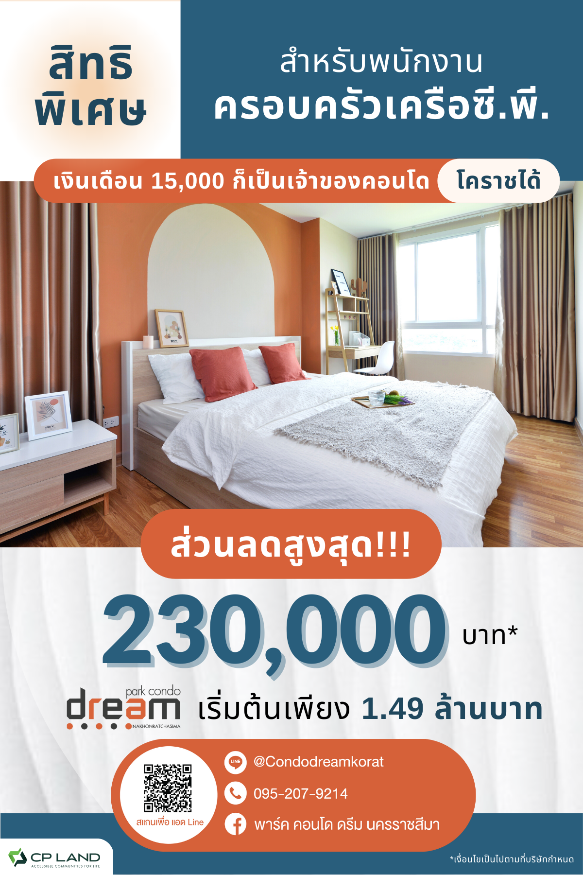 Park Condo Dream Nakhon Ratchasima offers a special privilege for CP FAMILY get a discount of up to 230,000 Baht
