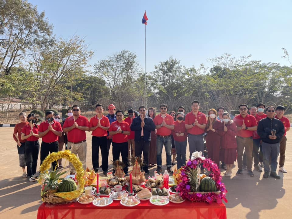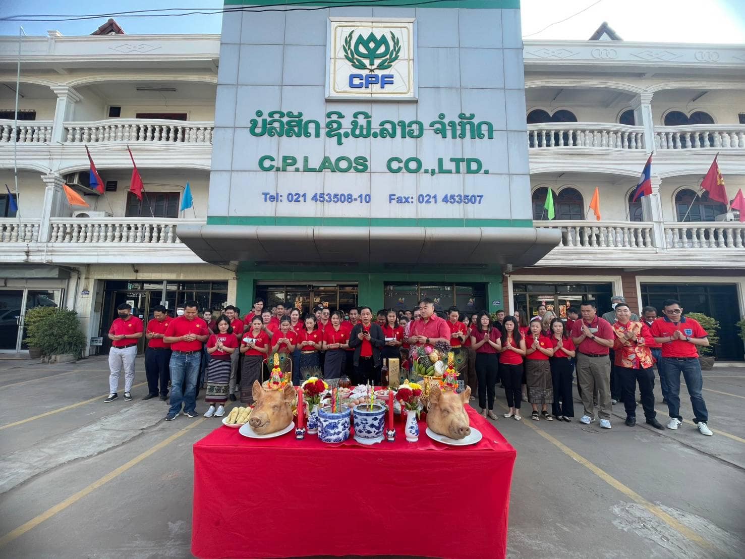 คุณทำนอง พลทองมาก กรรมการผู้จัดการ CP ลาว นำคณะผู้บริหารและพนักงาน ร่วมพิธีไหว้สิ่งศักดิ์สิทธิ์ เพื่อความเป็นสิริมงคลและสืบสานวัฒนธรรมประเพณีอันดีงาม เนื่องในเทศกาลตรุษจีน ประจำปี 2566 ณ สำนักงานนครหลวงเวียงจันทน์ โรงงาน ฟาร์ม และสถานประกอบการทั่วประเทศลาว