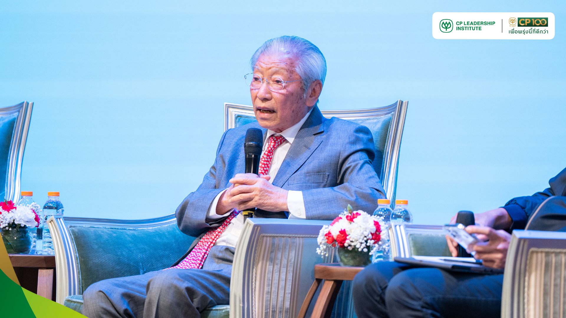 คุณพิมลรัตน์ รีพัฒนาวิจิตรกุล ผู้อำนวยการ สถาบันผู้นำเครือเจริญโภคภัณฑ์ กล่าวเสริมเวทีเสวนาว่า สถาบันผู้นำฯ เล็งเห็นว่า การสร้าง Ecosystem ให้ผู้นำรุ่นใหมเพื่อใข้ในการกำกับและสนับสนุน เป็นกลไกสำคัญที่ส่งเสริมการเรียนรู้แบบ Action Learning ให้มีประสิทธิภาพที่สุด โดยระบบที่มุ่งเน้นคือ Knowledge Management ที่ผู้ใช้งานจะต้องค้นหาหรือเข้าถึงองค์ความรู้ที่ต้องการได้อย่างรวดเร็ว ตอบสนองต่อพฤติกรรมของผู้นำรุ่นใหม่ มีองค์ความรู้มากมายที่ถูกส่งต่อจากรุ่นสู่รุ่น มีการรวบรวม เรียบเรียง และบันทึกเป็นอย่างดี เพื่อเป็นแหล่งเรียนรู้และเครื่องมือสำคัญที่ช่วยสนับสนุนการเรียนรู้ของเถ้าแก่ที่ต้องลงหน้างานจริงตั้งแต่สัปดาห์แรกเริ่มต้นโครงการ โดยสถาบันผู้นำฯ ยังตั้งเป้าหมายต่อยอดในการเป็นผู้สร้างระบบ Learning Management System ที่ดีที่สุดของเครือซีพี ซึ่งเป็นซอฟต์แวร์เฉพาะตัวที่สถาบันผู้นำฯ สั่งตัดเองและสามารถใช้งานร่วมกับหน่วยธุรกิจในเครือได้ทั่วโลก
