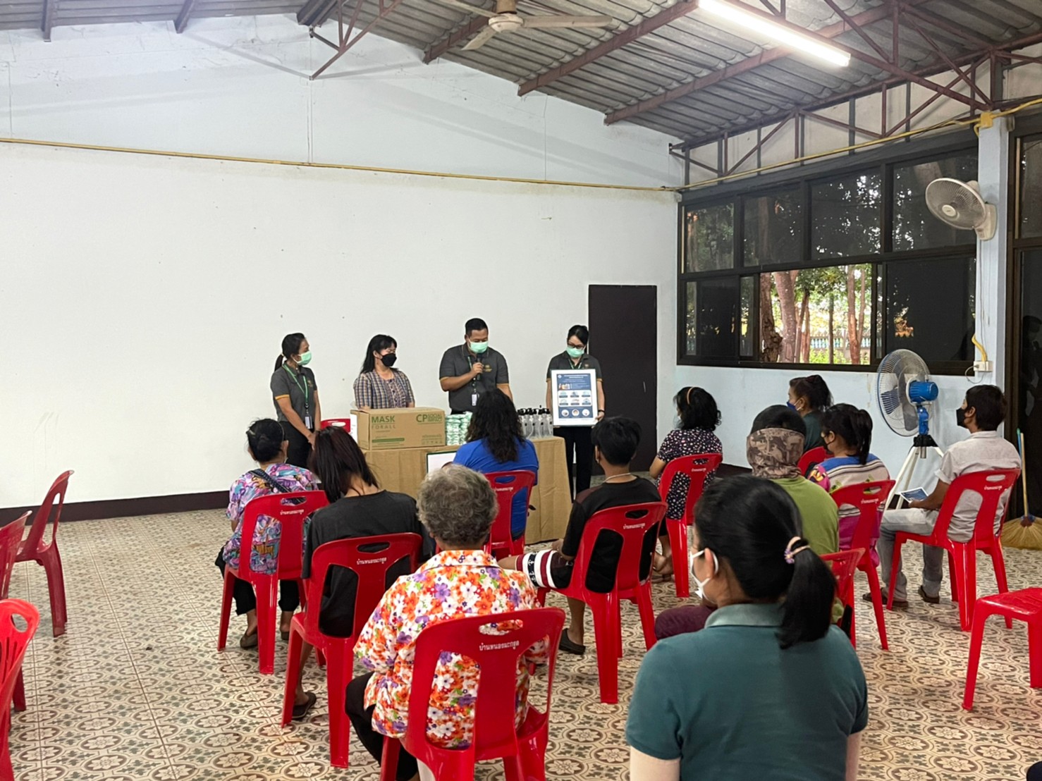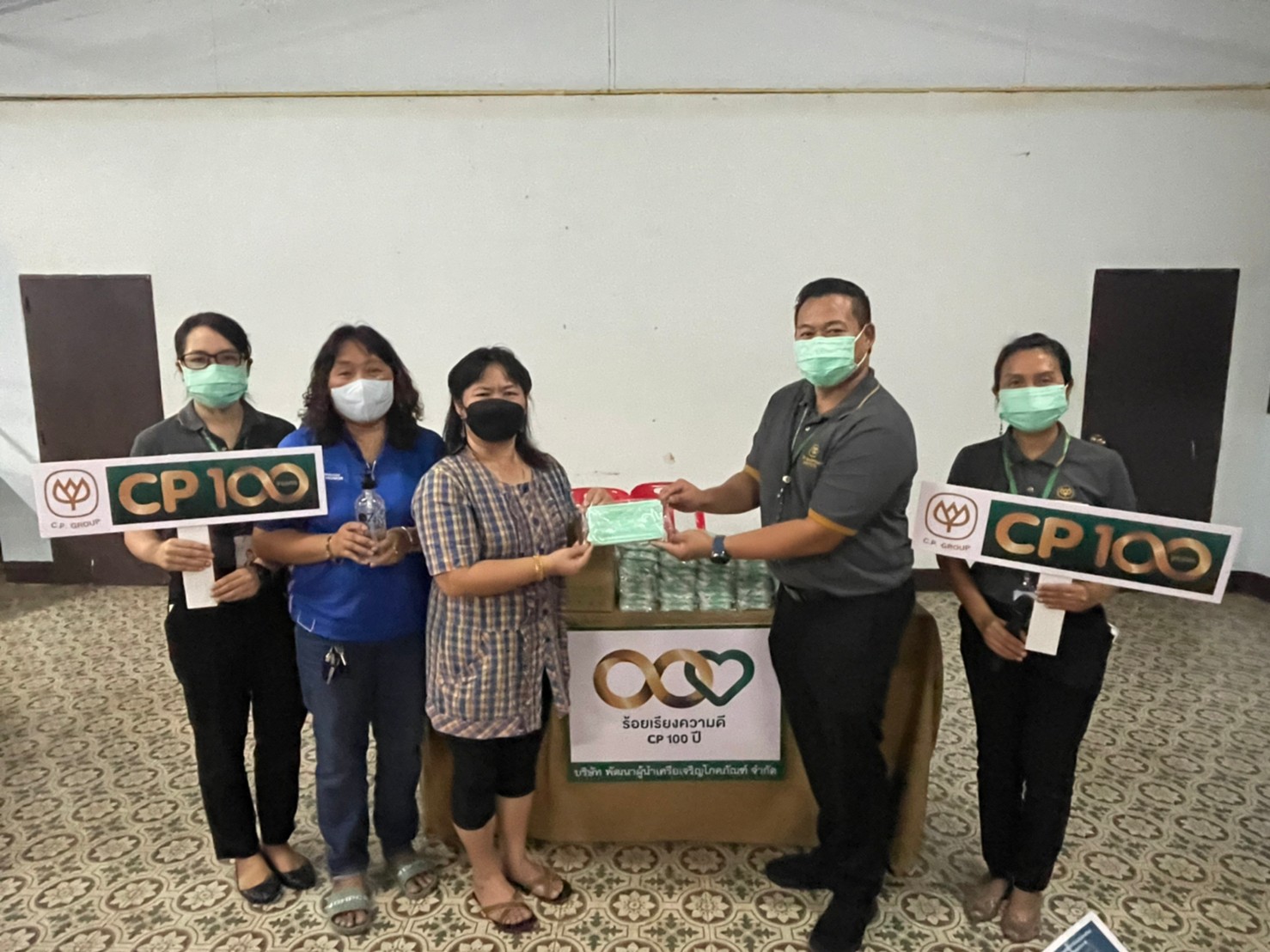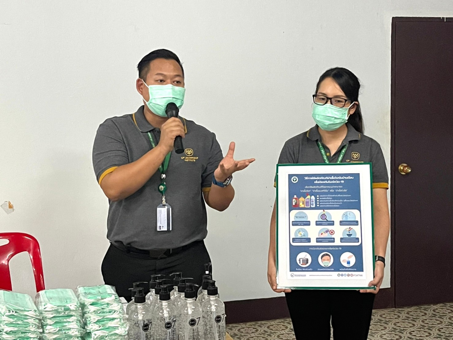 บริษัท พัฒนาผู้นำเครือเจริญโภคภัณฑ์ จำกัด โดยงานกำกับดูแลกิจการและสื่อสารองค์กร เป็นตัวแทนบริษัทฯ ส่งมอบเจลแอลกอฮอล์ล้างมือ 10 ขวด และหน้ากากอนามัย C.P. 500 ชิ้น ให้กับผู้ใหญ่บ้าน คุณเตือนใจ บุญจึงเจริญรัตน์ เป็นผู้รับมอบ เพื่อนำไปใช้ในกิจกรรมของชุมชน ภายใต้แนวปฏิบัติในการป้องกันและเฝ้าระวังโรคโควิด-19