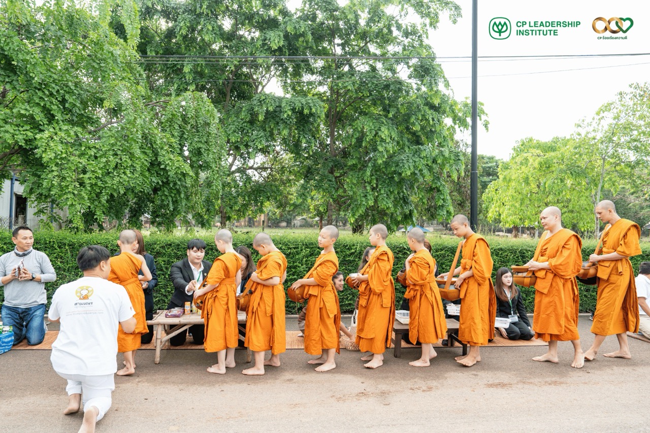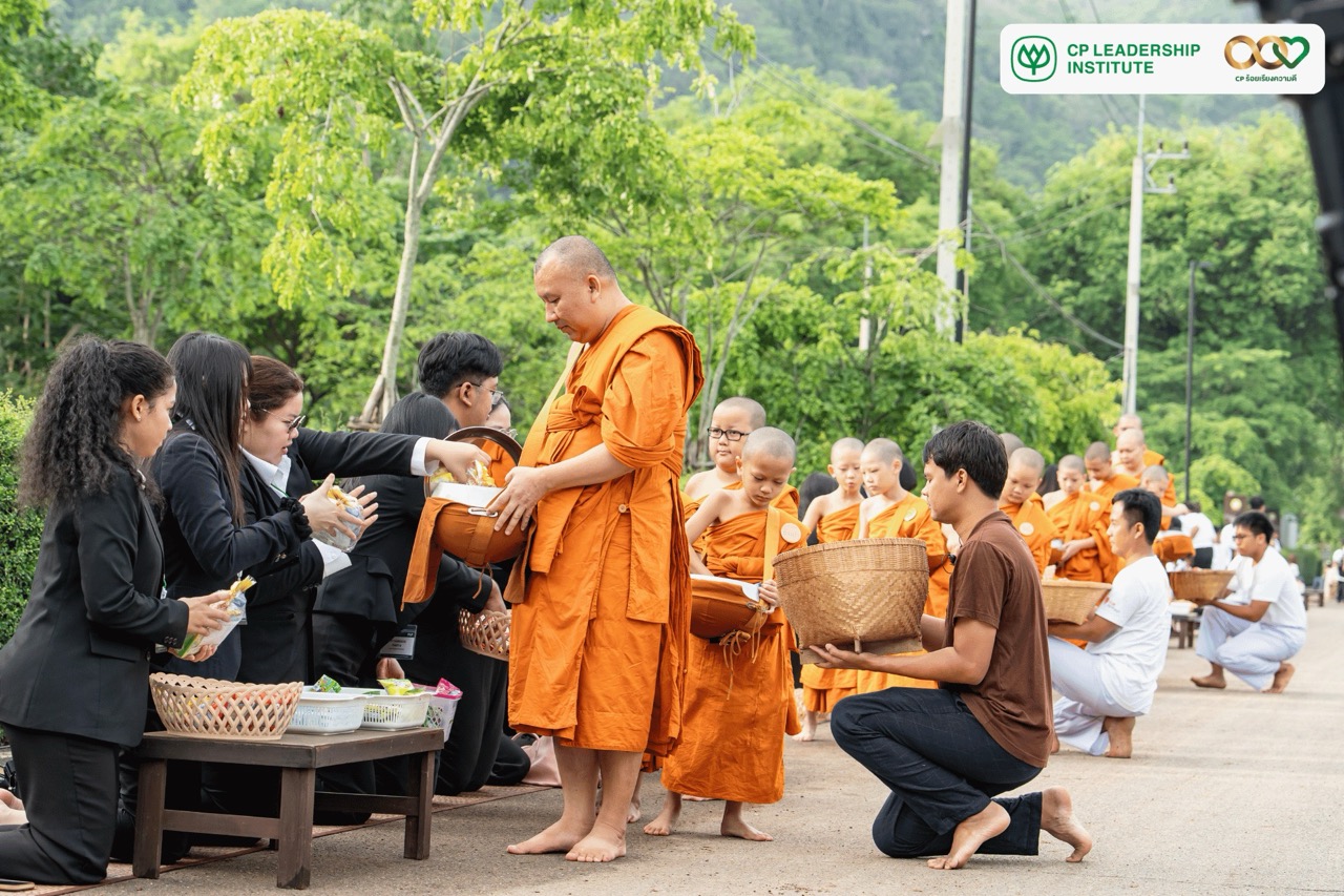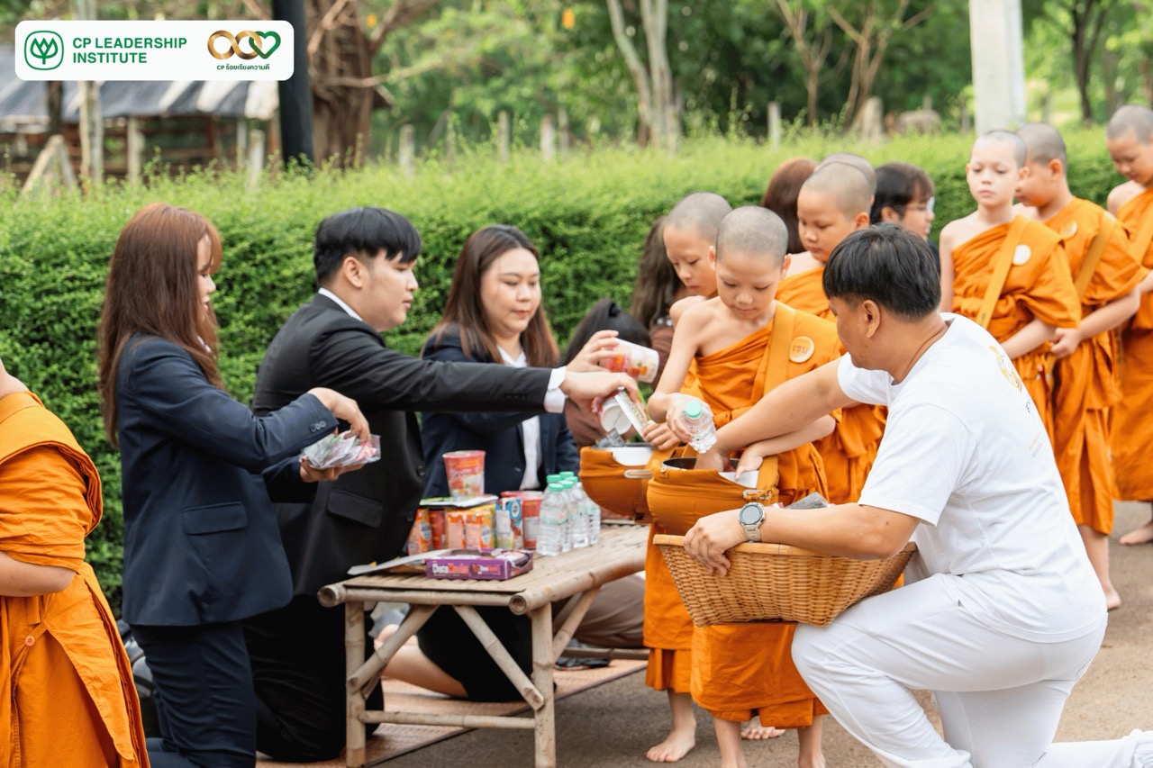 สถาบันผู้นำเครือเจริญโภคภัณฑ์ (CPLI) นำผู้เข้าร่วมสัมมนาหลักสูตร “เถ้าแก่น้อย” จากกลุ่มธุรกิจในเครือฯ ได้แก่ CPALL, CPF, CP AXTRA และ TRUE จำนวน 35 คน เข้าร่วมกิจกรรมตักบาตรอาหารแห้งแด่พระสงฆ์และสามเณรน้อยทั้ง 12 รูป จากโครงการสามเณรปลูกปัญญาธรรม ณ สถานปฏิบัติธรรมธวีธรรม จ.นครราชสีมา เพื่อส่งเสริมการเรียนรู้ธรรมะควบคู่กับการหล่อหลอมจิตใจ ซึ่งถือเป็นรากฐานสำคัญของ “ผู้นำต้นแบบ” ที่มีเมตตาและจิตสาธารณะ