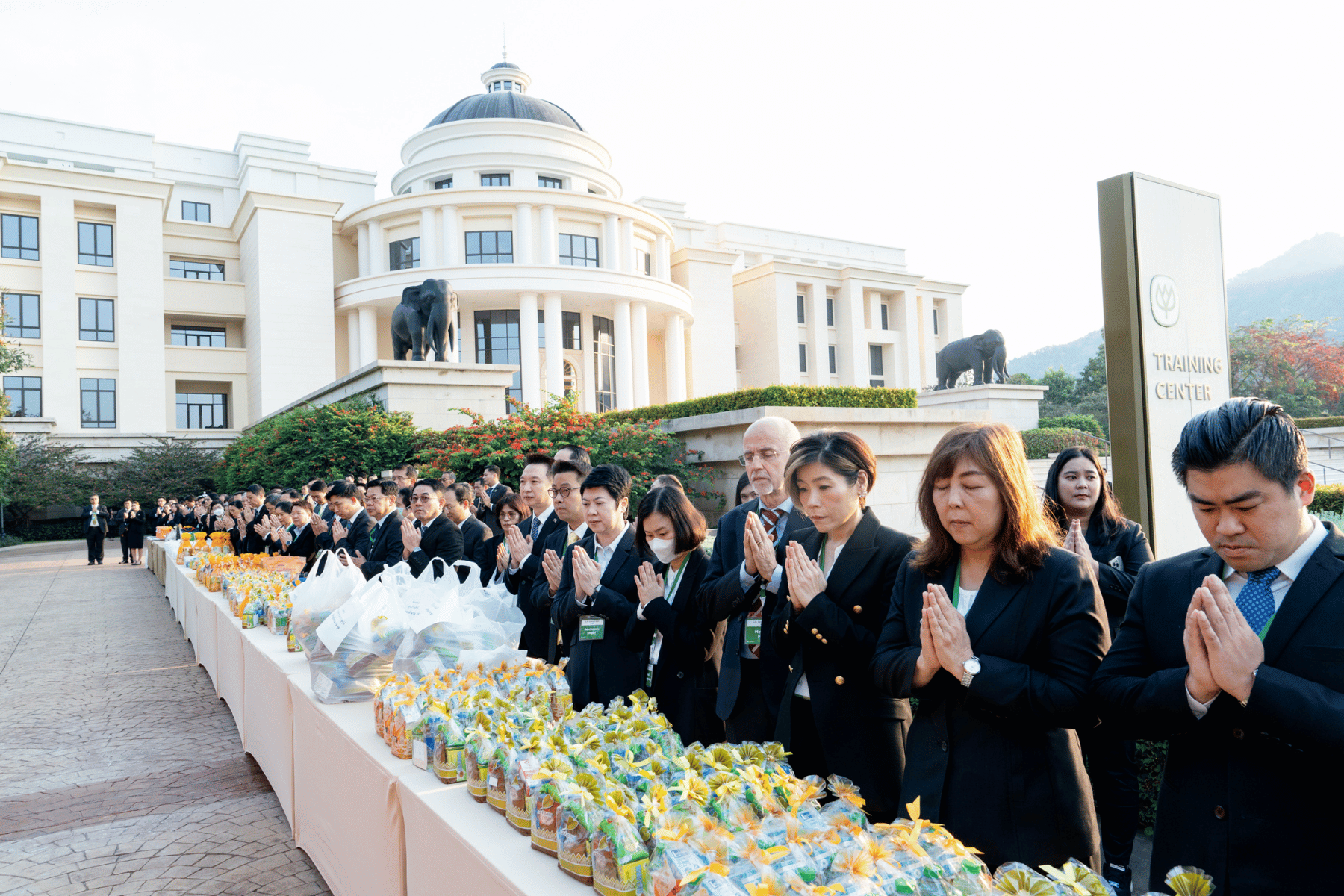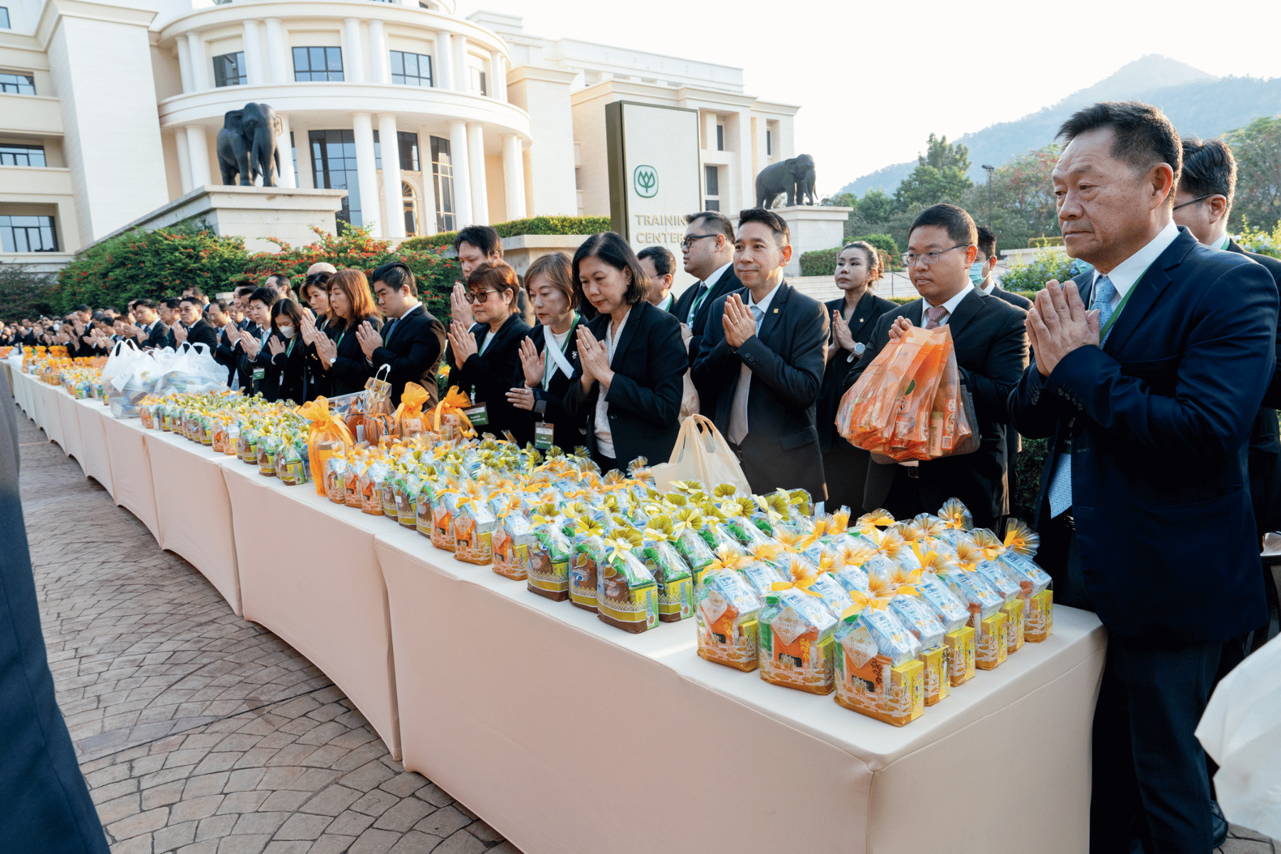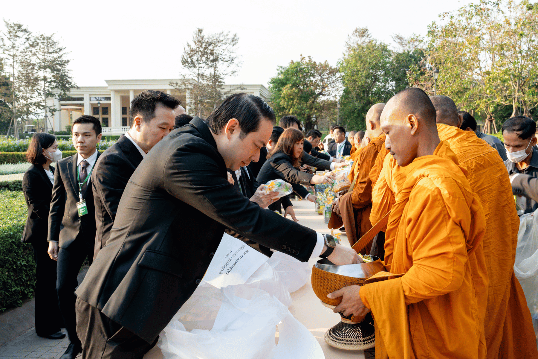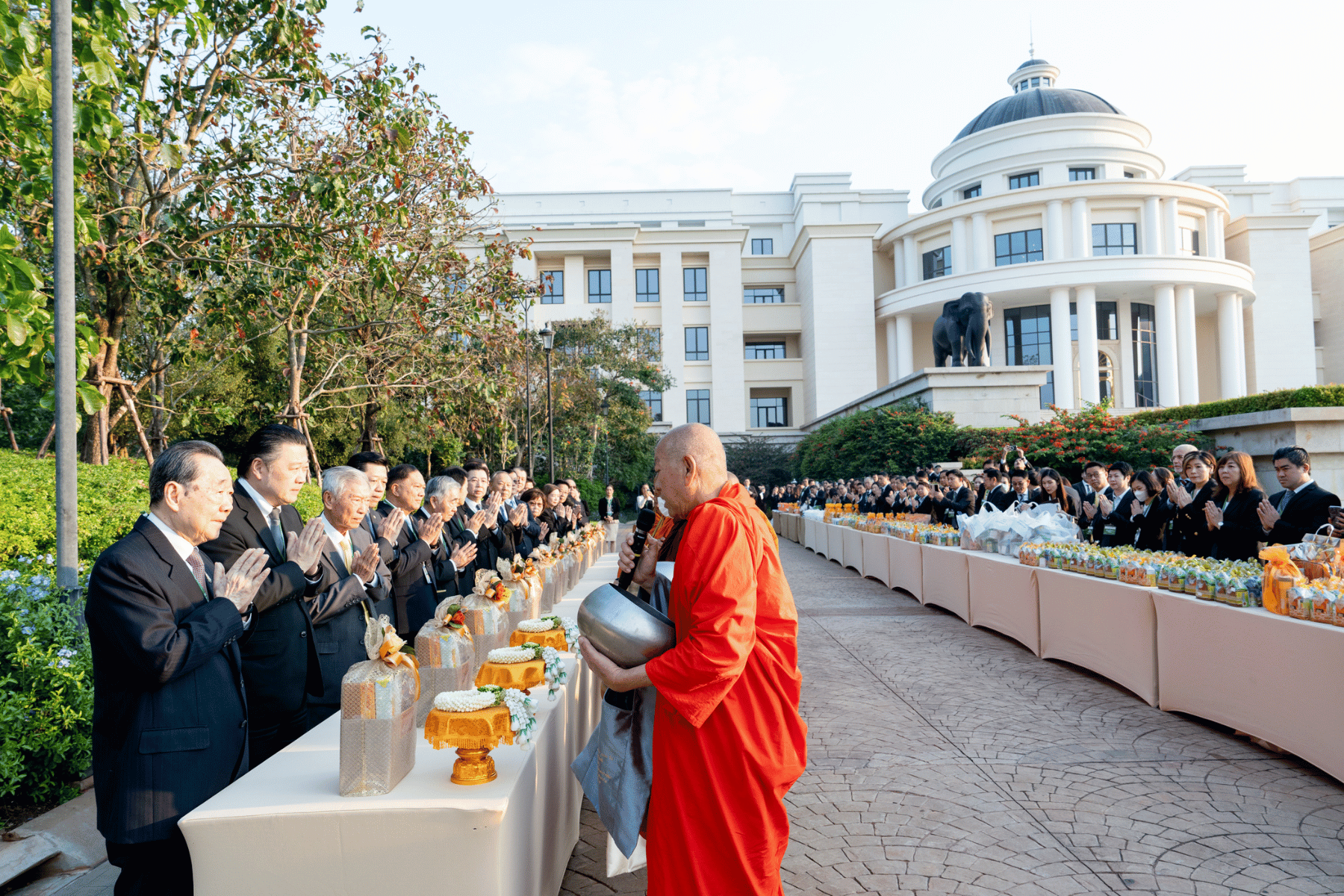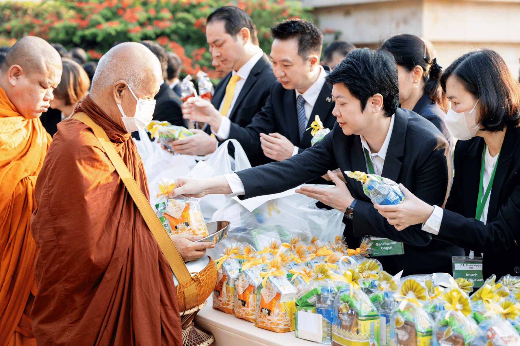 สถาบันผู้นำเครือเจริญโภคภัณฑ์ จัดพิธีทำบุญตักบาตรพระสงฆ์ จำนวน 19 รูป เพื่อความเป็นสิริมงคล ต้อนรับปีมังกร นำโดย ท่านประธานอาวุโสธนินท์ เจียรวนนท์ คุณสุภกิต เจียรวนนท์ ประธานกรรมการ คุณศุภชัย เจียรวนนท์ ประธานคณะผู้บริหาร คุณพิมลรัตน์ รีพัฒนาวิจิตรกุล ประธานผู้บริหารทรัพยากรบุคคล และผู้อำนวยการสถาบันผู้นำเครือเจริญโภคภัณฑ์ พร้อมด้วยผู้บริหารระดับสูงและพนักงานจากทุกกลุ่มธุรกิจในเครือฯ เข้าร่วมโดยพร้อมเพรียงกัน ณ ลานหน้าเสาธง อาคารฝึกอบรม