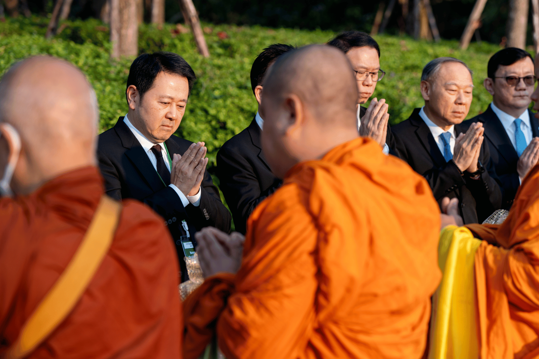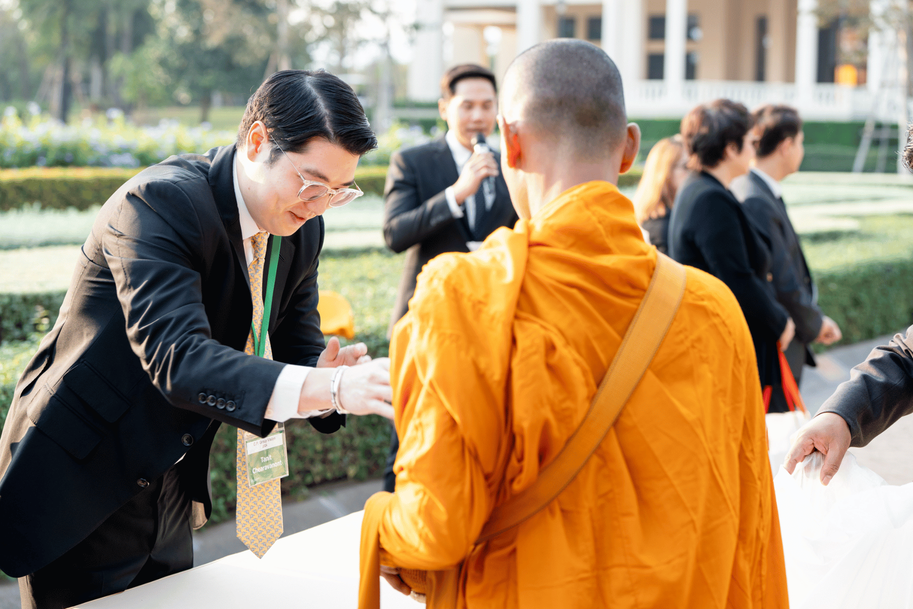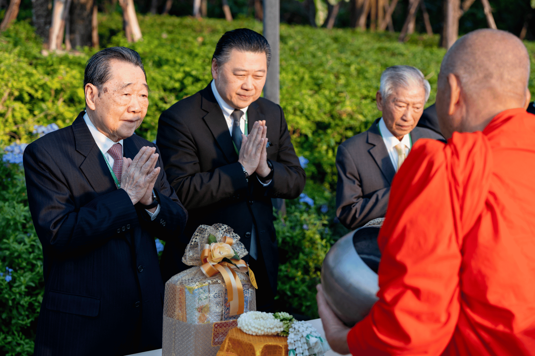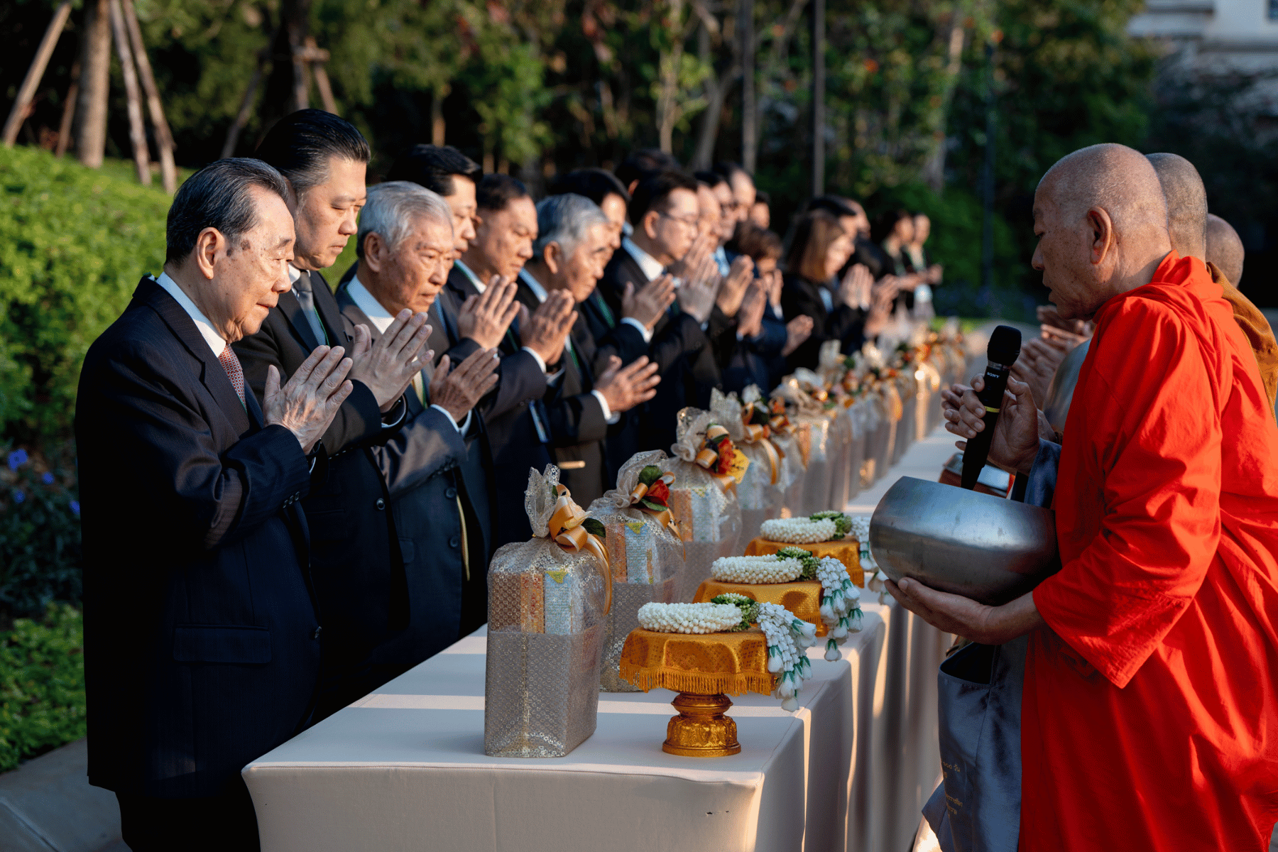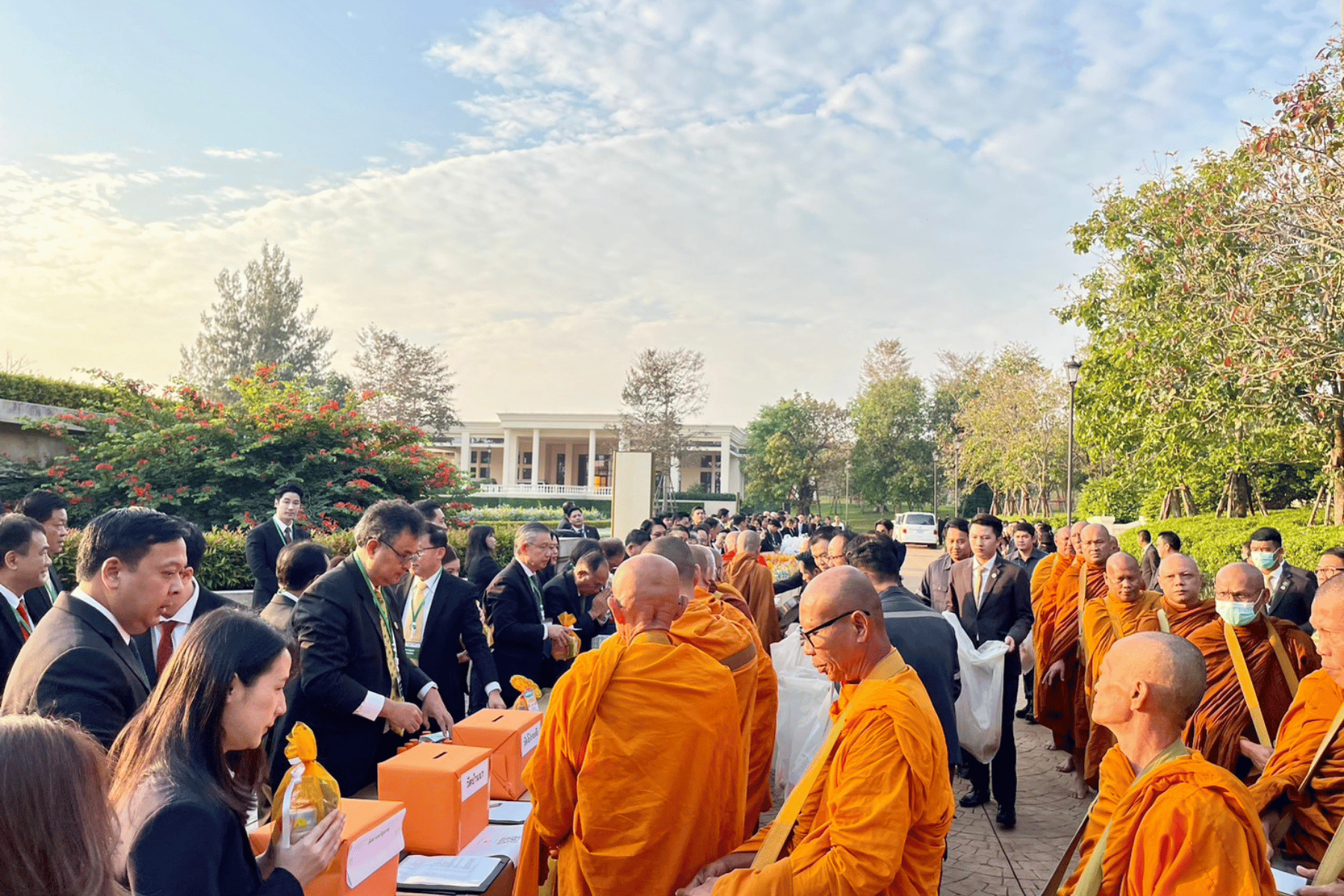สถาบันผู้นำเครือเจริญโภคภัณฑ์ จัดพิธีทำบุญตักบาตรพระสงฆ์ จำนวน 19 รูป เพื่อความเป็นสิริมงคล ต้อนรับปีมังกร นำโดย ท่านประธานอาวุโสธนินท์ เจียรวนนท์ คุณสุภกิต เจียรวนนท์ ประธานกรรมการ คุณศุภชัย เจียรวนนท์ ประธานคณะผู้บริหาร คุณพิมลรัตน์ รีพัฒนาวิจิตรกุล ประธานผู้บริหารทรัพยากรบุคคล และผู้อำนวยการสถาบันผู้นำเครือเจริญโภคภัณฑ์ พร้อมด้วยผู้บริหารระดับสูงและพนักงานจากทุกกลุ่มธุรกิจในเครือฯ เข้าร่วมโดยพร้อมเพรียงกัน ณ ลานหน้าเสาธง อาคารฝึกอบรม