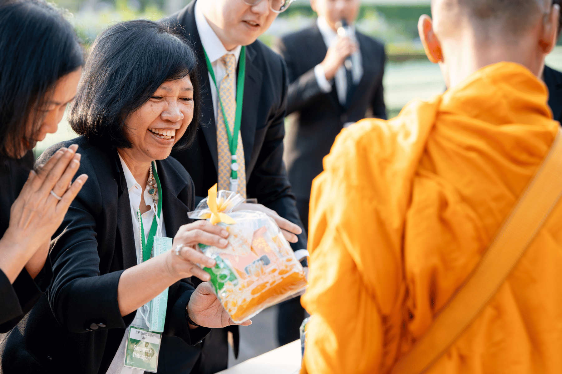 สถาบันผู้นำเครือเจริญโภคภัณฑ์ มุ่งมั่นในการประยุกต์ หลักค่านิยม 6 ประการของเครือฯ มาปรับใช้ในการดำเนินกิจกรรมของสถาบัน ทั้งนี้ พิธีทำบุญตักบาตร นับเป็นกิจกรรมที่ส่งเสริมคุณธรรม ซึ่งเป็นหนึ่งในหลักค่านิยม 6 ประการของเครือฯ โดยจะร่วมสร้างสังคมแห่งคุณธรรมให้ยิ่งงอกงามและดำรงอยู่อย่างยั่งยืนในสังคมไทยต่อไป