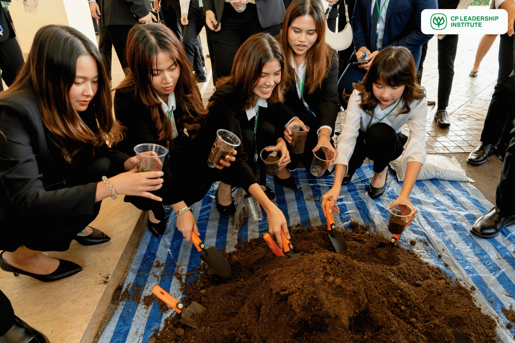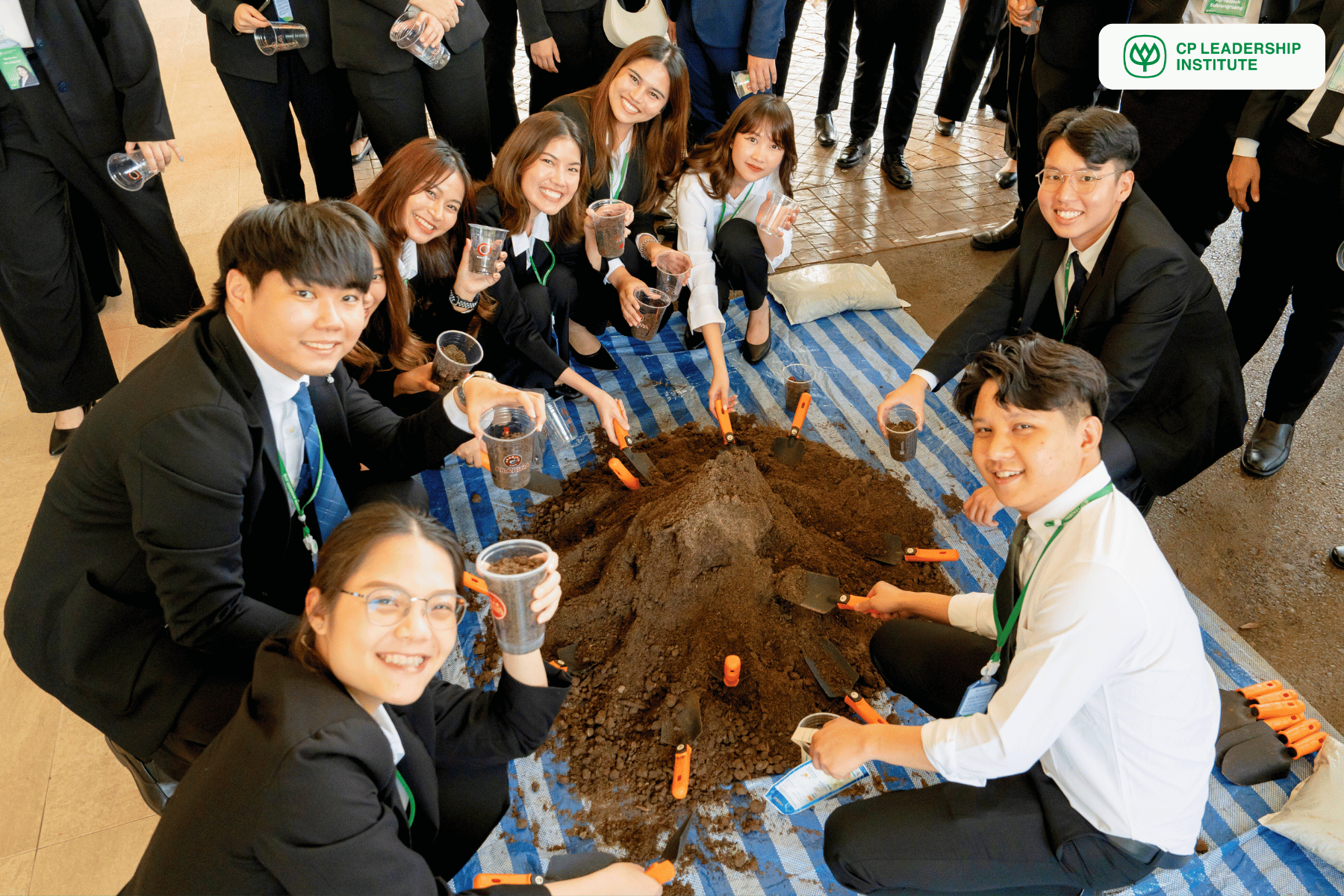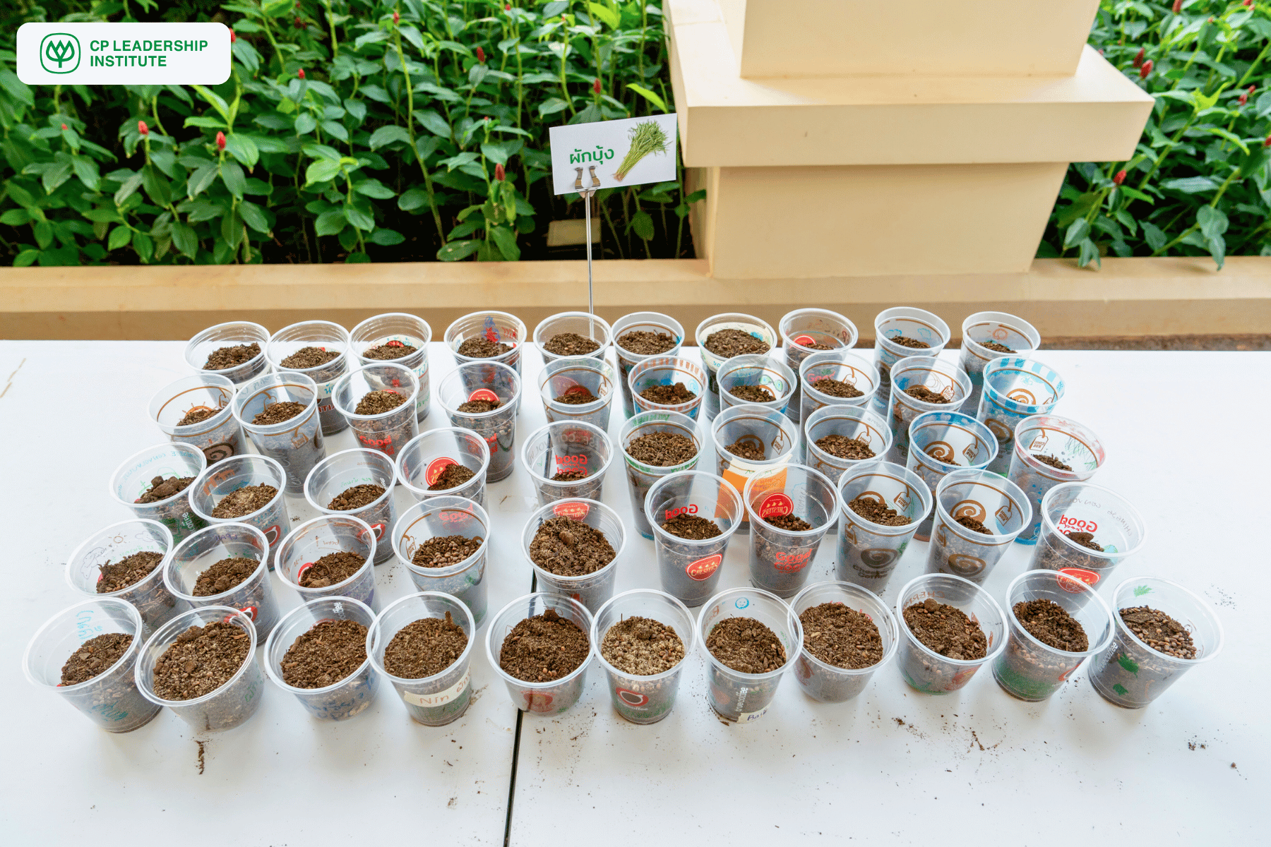 สถาบันผู้นำเครือเจริญโภคภัณฑ์ (CPLI) เชิญชวนผู้เข้าร่วมสัมมนาหลักสูตรพัฒนาผู้นำที่มีศักยภาพ เครือเจริญโภคภัณฑ์ (เถ้าแก่เล็ก) หรือ CP Potential Leaders Development Program (PLP) ร่วมกิจกรรม “PLP พาแก้ว มาเพาะกล้า” กิจกรรมดีๆ ภายใต้โครงการเชิงกลยุทธ์ “CPLI ปลูกเพื่อความยั่งยืน (PLANT FOR THE FUTURE)” ด้วยการนำแก้วเครื่องดื่มที่ไม่ใช้ประโยชน์แล้ว กลับมาใช้ใหม่เป็นถุงเพาะชำหรือกระถางพลาสติก โดยเถ้าแก่เล็กได้ร่วมกันเจาะรูใต้แก้วพลาสติกเพื่อระบายน้ำ, ผสมดินปลูก, ตักดินปลูกใส่แก้ว, วางเมล็ดผักสวนครัวหรือไม้ยืนต้น 4-5 เมล็ดต่อแก้ว, เกลี่ยดินกลบ, รดน้ำพอชุ่ม, แล้วนำไปอนุบาลเพื่อเลี้ยงดูให้เติบโตก่อนส่งมอบแก่ชุมชนเป็นอาหารปลอดภัยใช้บริโภคในครัวเรือนหรือปลูกลงดินเพื่อเพิ่มพื้นที่สีเขียวต่อไป