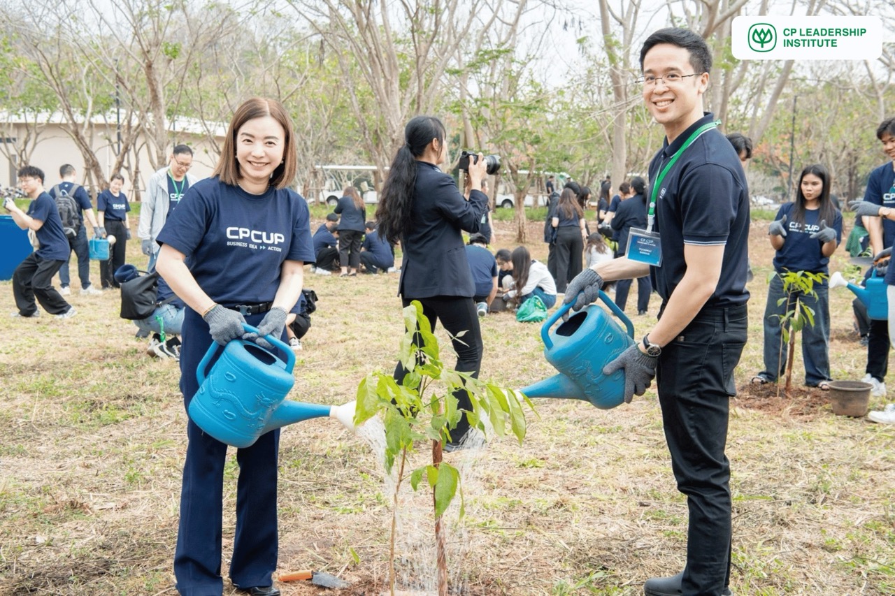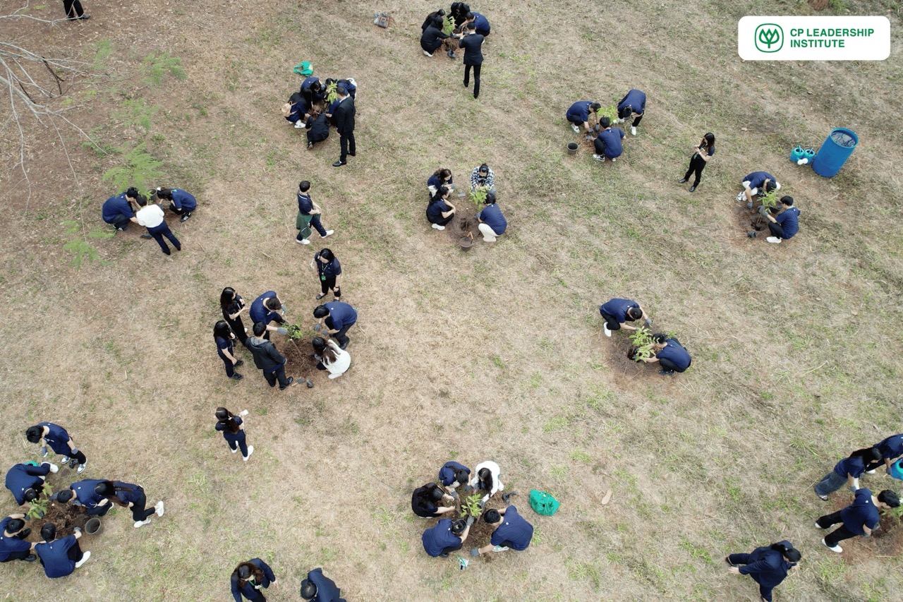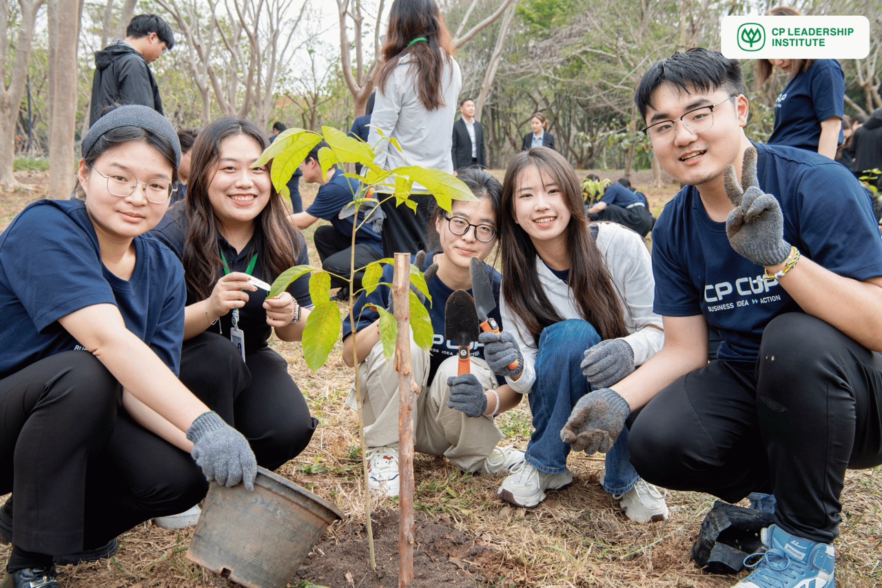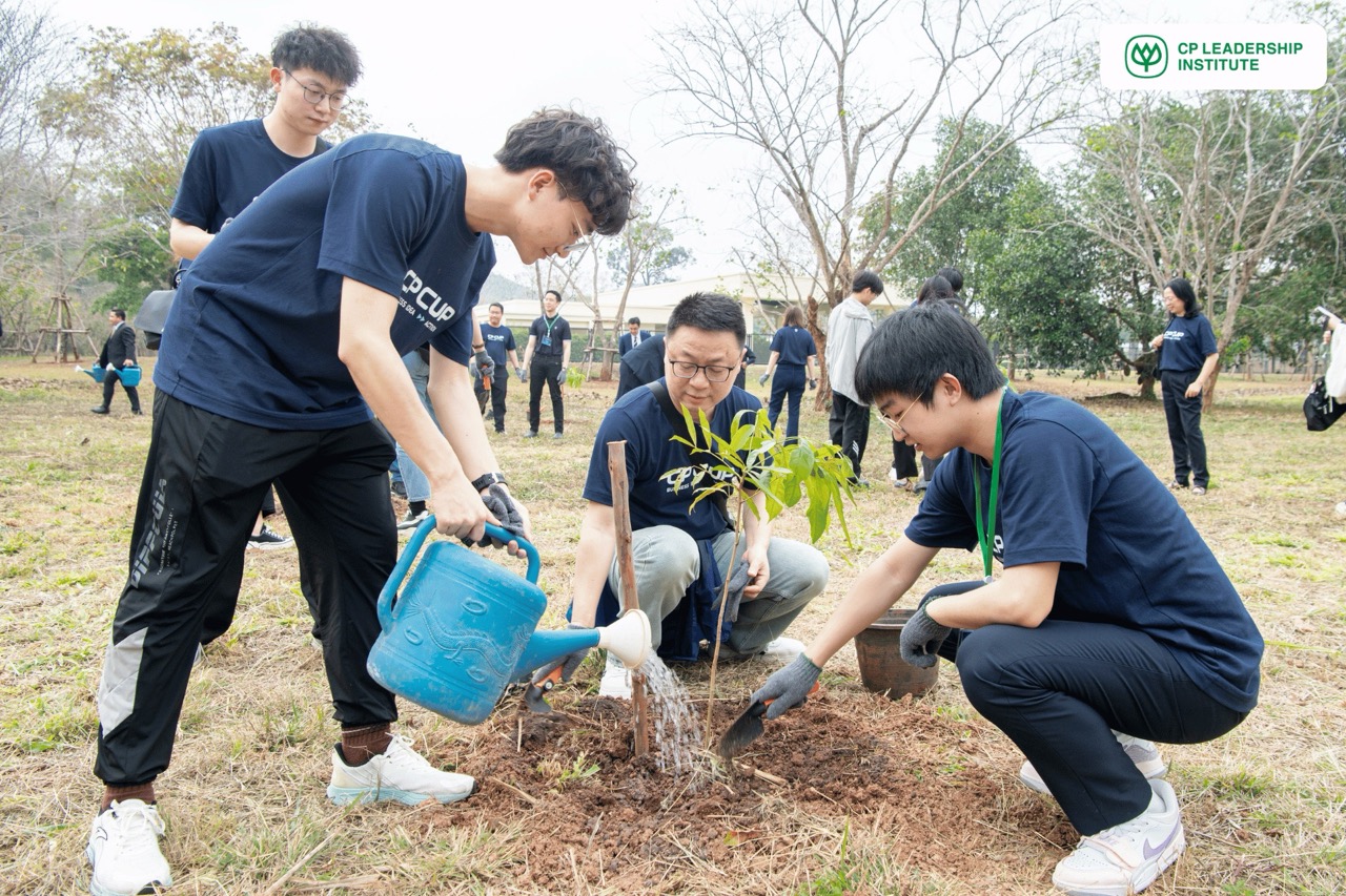 จากนั้น CPLI ได้จัดกิจกรรมปลูกต้นไม้เพื่อเสริมสร้างจิตสำนึกด้านสิ่งแวดล้อมให้แก่ผู้เข้าร่วม โดยได้รับเกียรติจาก คุณพิมลรัตน์ รีพัฒนาวิจิตรกุล ประธานผู้บริหารทรัพยากรบุคคลเครือเจริญโภคภัณฑ์ และผู้อำนวยการสถาบันผู้นำเครือเจริญโภคภัณฑ์ (CPLI) และสายงานทรัพยากรบุคคล บริษัท เจริญโภคภัณฑ์อาหาร จำกัด (มหาชน) ร่วมปลูกต้นไม้กับนิสิต นักศึกษา เพื่อแสดงถึงความร่วมมือระดับนานาชาติในการสร้างอนาคตที่ยั่งยืนผ่านการลงมือทำจริงร่วมกัน ถือเป็นจุดเริ่มต้นของการบ่มเพาะแนวคิดด้านความยั่งยืนในระดับโลก โดยตั้งเป้าที่จะให้เยาวชนรุ่นใหม่ได้เรียนรู้ถึงความสำคัญของการดูแลสิ่งแวดล้อมผ่านการกระทำที่เป็นรูปธรรม พร้อมนำความรู้และประสบการณ์จากกิจกรรมนี้ไปต่อยอดเพื่อสร้างผลกระทบในวงกว้าง