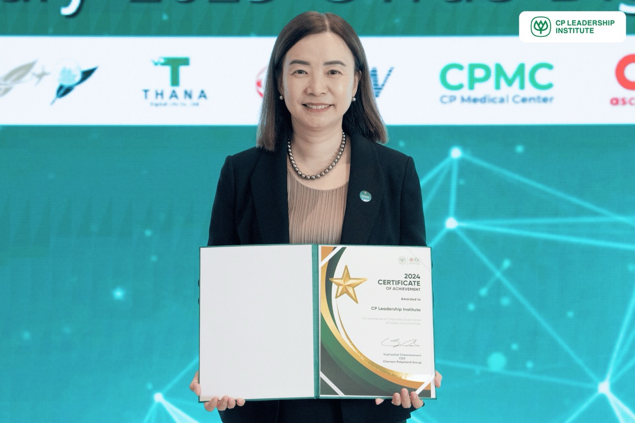 คุณพิมลรัตน์ ริพัฒนาวิจิตรกุล ผู้อำนวยการ สถาบันผู้นำเครือเจริญโภคภัณฑ์ (CPLI) เข้ารับเกียรติบัตร 2024 CG Achievement Awards ระดับ Gold จาก คุณศุภชัย เจียรวนนท์ ประธานคณะผู้บริหาร เครือเจริญโภคภัณฑ์ ในงาน Toward Excellence: The Next Era of CG งานประชุมด้านธรรมาภิบาลที่จัดขึ้นเพื่อยกระดับมาตรฐานการกำกับดูแลกิจการของเครือฯ สู่อนาคตที่ยั่งยืน รางวัลนี้สะท้อนถึงความมุ่งมั่นของ CPLI ในการนำหลักธรรมาภิบาลมาปฏิบัติอย่างเป็นรูปธรรม เสริมสร้างความโปร่งใส และขับเคลื่อนองค์กรตามแนวทาง ESG โดยคุณศุภชัยได้ให้เกียรติเป็นประธานในพิธีและกล่าวปาฐกถาเกี่ยวกับความสำคัญของธรรมาภิบาลและความโปร่งใส ซึ่งเป็นรากฐานสำคัญของการสร้างความยั่งยืนในทุกอุตสาหกรรม