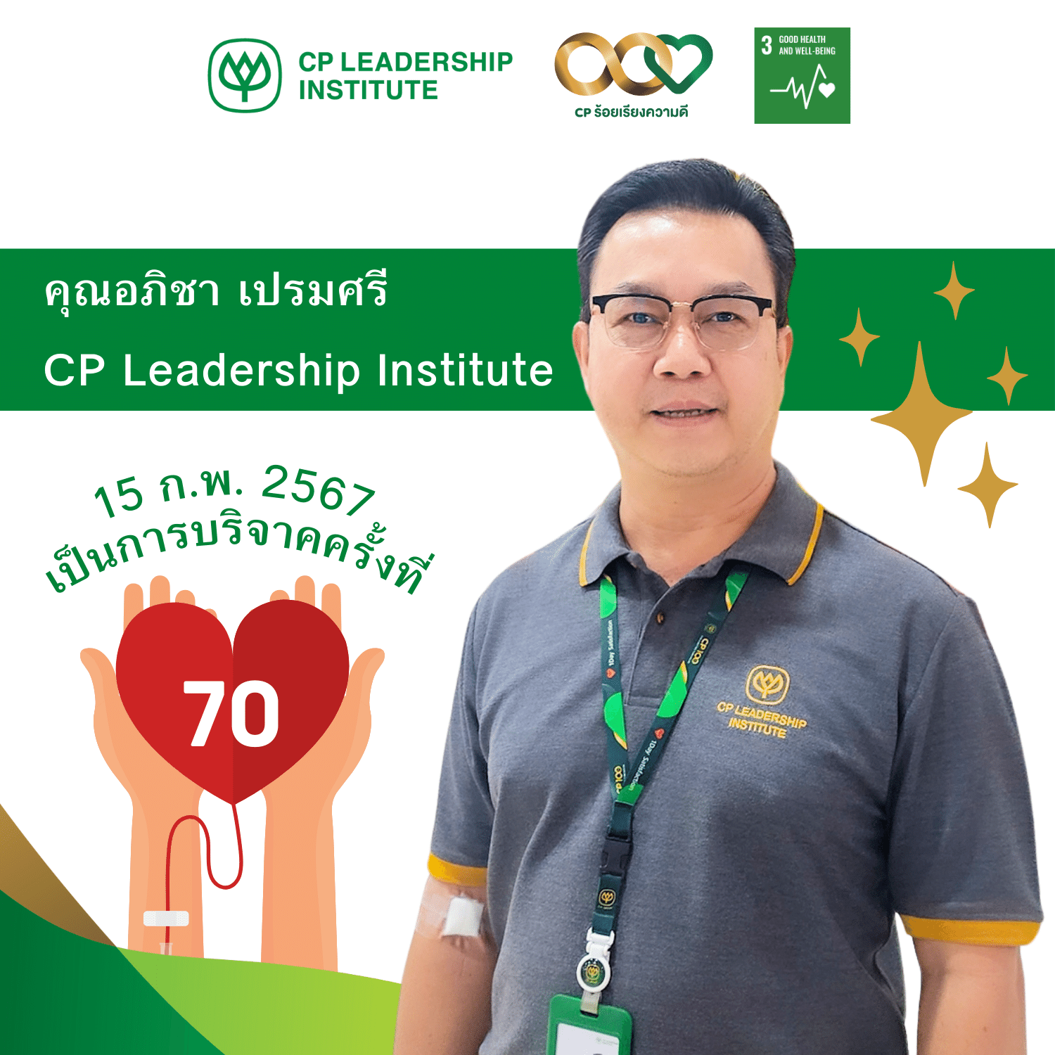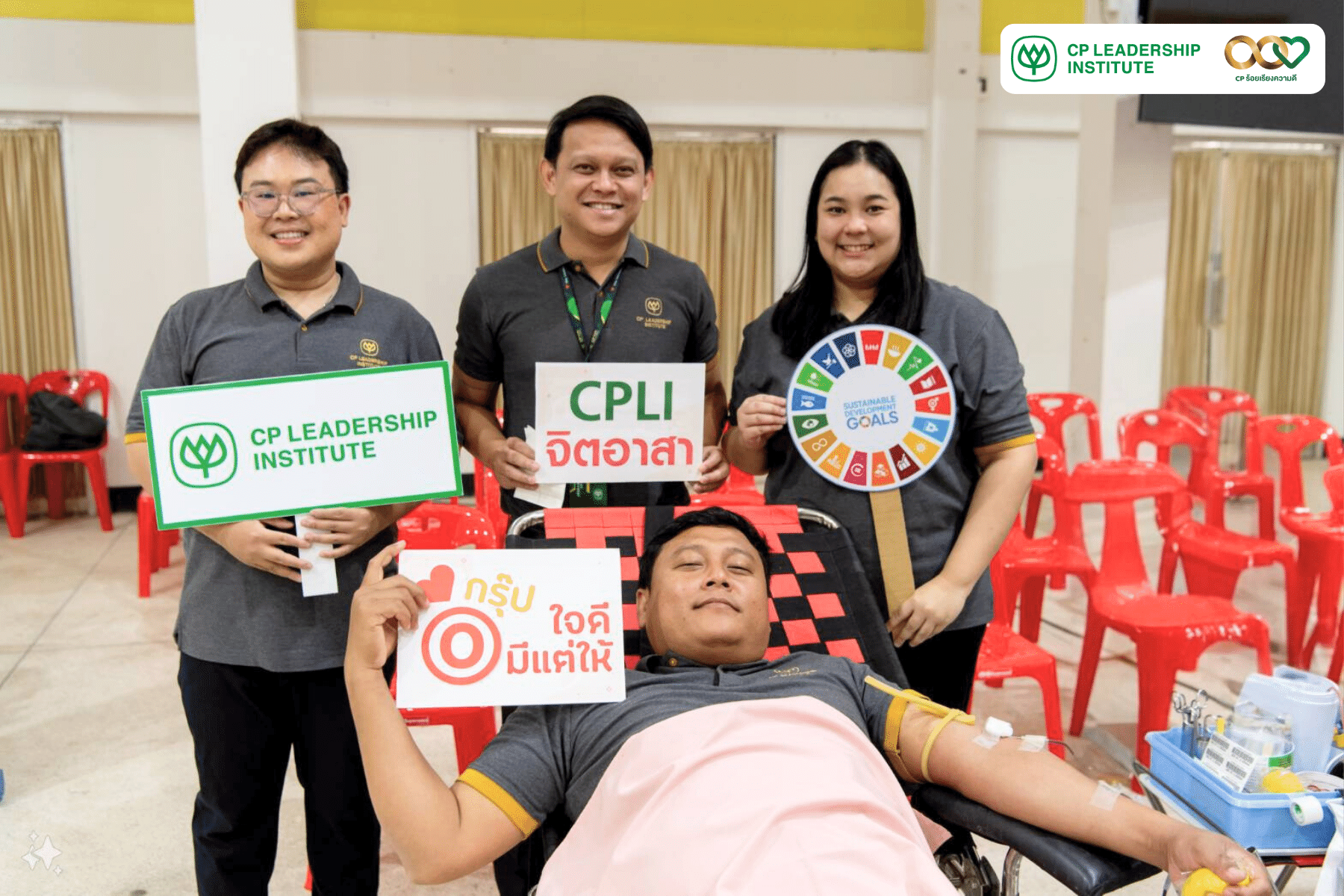 สถาบันผู้นำเครือเจริญโภคภัณฑ์ หรือ CPLI ตระหนักถึงความสำคัญของกิจกรรมอันเป็นประโยชน์ต่อส่วนรวมและให้การสนับสนุนกิจกรรมบริจาคโลหิตซึ่งจัดขึ้นทุก ๆ 3 เดือน มาเป็นประจำอย่างต่อเนื่องเข้าสู่ปีที่ 5 เพื่อเป็นการส่งเสริมให้ประชาชนได้ตระหนักและให้ความสำคัญของการบริจาคโลหิต อันจะเป็นประโยชน์ต่อเพื่อนมนุษย์อย่างมหาศาล เพราะเป็นการยกระดับสุขภาพและส่งเสริมความเป็นอยู่ที่ดีของประชาชน อีกทั้งยังเป็นการสร้างคุณประโยชน์ให้เกิดต่อประเทศชาติ ประชาชน และองค์กรอย่างยั่งยืน ตามหลัก “สามประโยชน์” ที่เครือเจริญโภคภัณฑ์ยึดหลักในการดำเนินธุรกิจ และตอบแทนคุณแผ่นดินมาตั้งแต่อดีตจนถึงปัจจุบัน