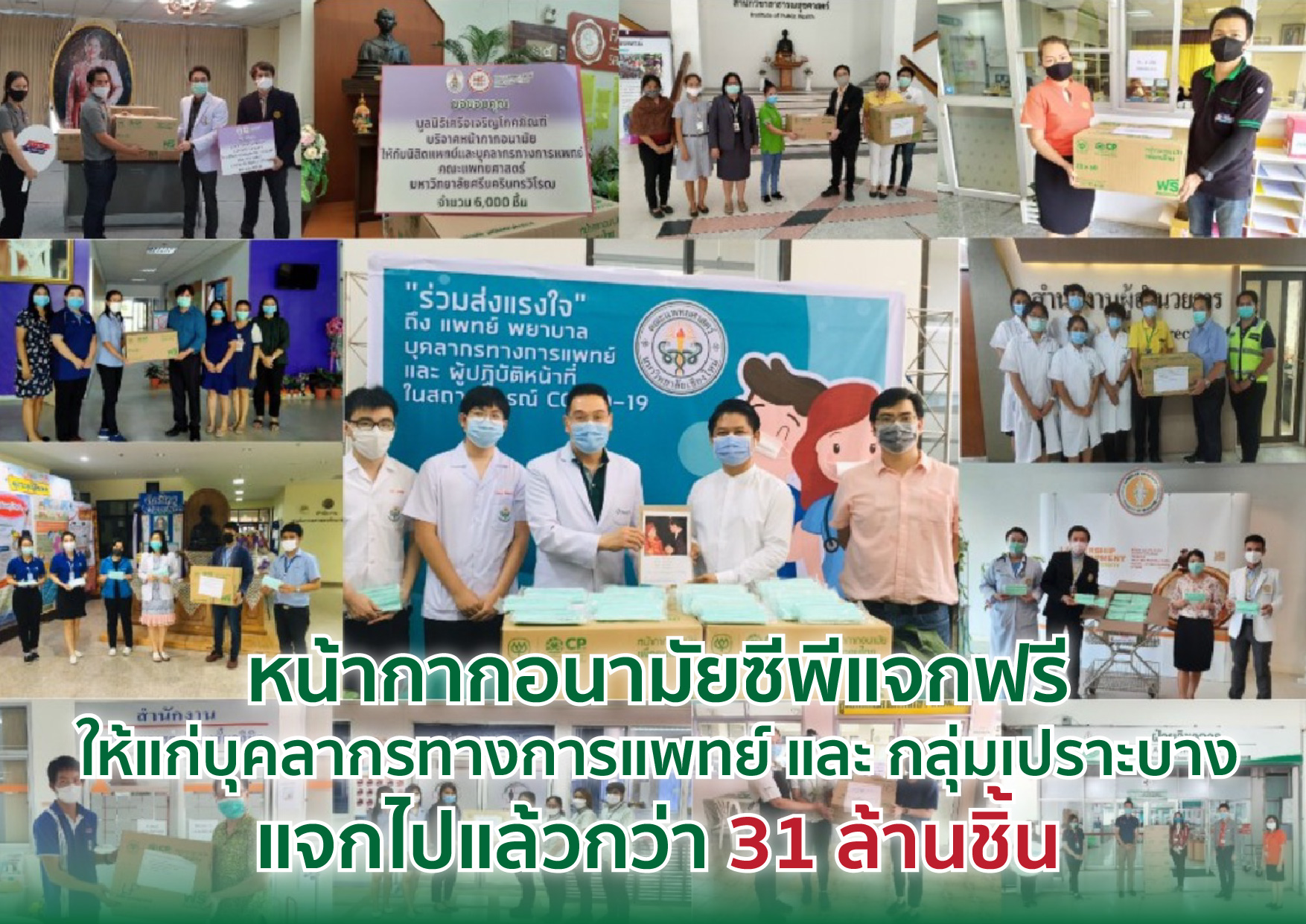 ต่อมาเครือเจริญโภคภัณฑ์และบริษัทในเครือฯ ได้ร่วมกันแจกจ่ายฟรีและบริจาคต่อหน่วยงานต่างๆทั้งภาครัฐ องค์กรการกุศล มูลินิธิ จิตอาสา ชุมชนแออัด คนพิการ โรงพยาบาลในชนบท โรงพยาบาลสนาม ศูนย์พักคอย และกลุ่มผู้เปราะบาง อย่างต่อเนื่องจนถึงปัจจุบันคิดเป็นจำนวนกว่า 31 ล้านชิ้น