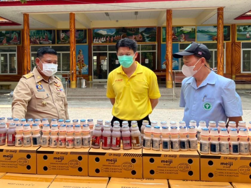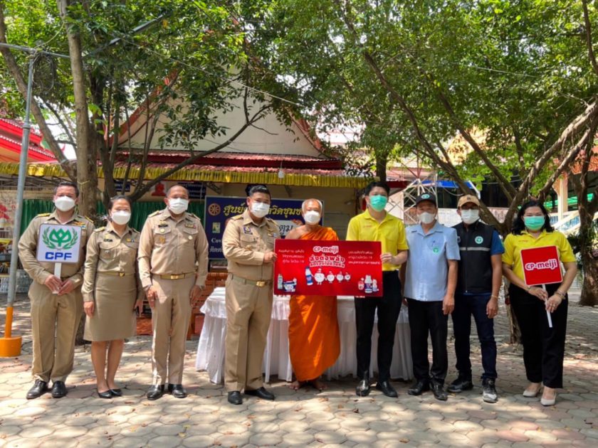คุณพุทธพงษ์ สุริยะสิงห์ นายอำเภอหนองแค จ.สระบุรี พร้อมด้วย คุณประชา ธนบัตรวิโรจน์ สาธารณสุขอำเภอหนองแค รับมอบผลิตภัณฑ์นมคุณภาพ จาก ซีพี-เมจิ เป็นมูลค่ากว่า 100,000 บาท ในโครงการ “ซีพี-เมจิ ส่งต่อพลัง สตรองไปด้วยกัน” ภายใต้โครงการ “CPF ส่งอาหารจากใจ ร่วมต้านภัยโควิด-19” ตามนโยบายเครือซีพี เพื่อเสริมพลังสร้างความแข็งแรงให้กับทีมแพทย์ และผู้ป่วยโควิด-19 ที่รักษาตัวในศูนย์พักคอยชุมชนวัดบ้านลาด และศูนย์พักคอยชุมชนวัดโคกมะตูม โดยมี คุณภูวนาถ โชคเพิ่มพูน ผู้จัดการทั่วไป และชาวจิตอาสา ซีพี-เมจิ เป็นผู้แทนมอบ ณ วัดโคกมะตูม อ.หนองแค จ.สระบุรี