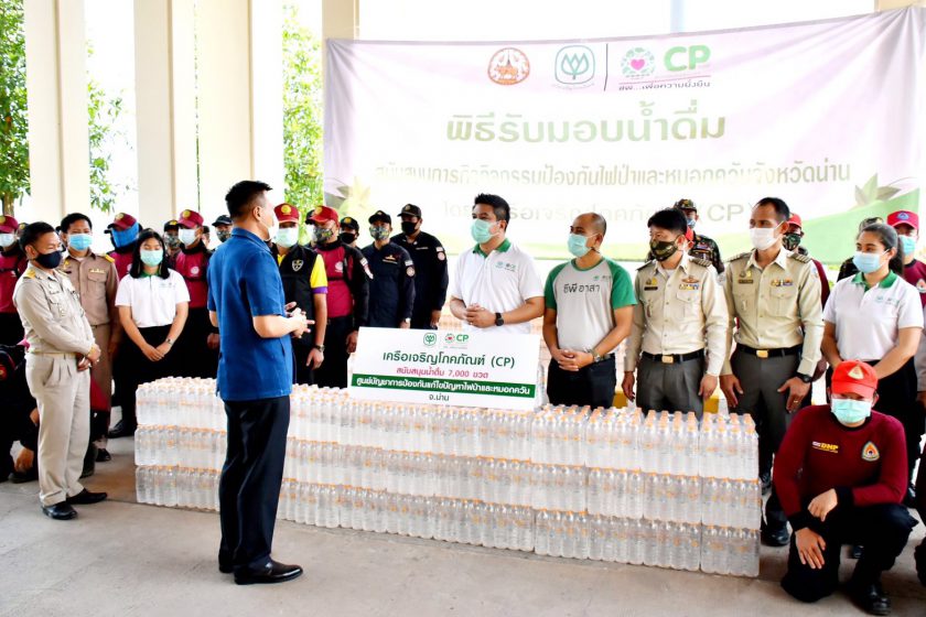 เครือเจริญโภคภัณฑ์ สนับสนุนน้ำดื่มจำนวน 7,000 ขวด ให้แก่ศูนย์บัญชาการป้องกันแก้ไขปัญหาไฟป่าและหมอกควันจ.น่าน  โดยมี คุณนิพันธ์ บุญหลวง ผู้ว่าราชการจังหวัดน่าน เป็นผู้รับมอบ ณ ศาลากลางจังหวัดน่าน เพื่อนำไปมอบให้แก่เจ้าหน้าที่และอาสาสมัครผู้ปฏิบัติงานในพื้นที่จังหวัดน่าน ในการปฏิบัติงานป้องกันแก้ไขปัญหาไฟป่าและหมอกควัน ต่อไป