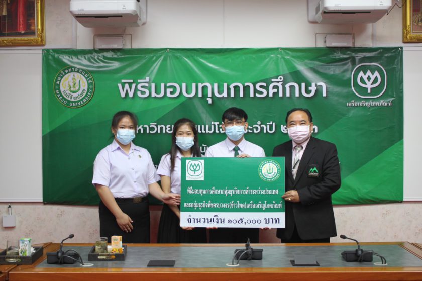 วันที่ 8 มิถุนายน 2564 บริษัท เจริญโภคภัณฑ์ โปรดิ๊วส จำกัด กลุ่มธุรกิจพืชครบวงจร (ข้าวโพด) จัดพิธีมอบทุนการศึกษาแก่นักศึกษาระดับปริญญาตรี มหาวิทยาลัยแม่โจ้ ที่มีผลการเรียนดี ความประพฤติดี แต่ขาดแคลนทุนทรัพย์ โดยได้ดำเนินการต่อเนื่องติดต่อกันมาจนถึงครั้งนี้เป็นปีที่ 7 แล้ว และด้วยสถานการณ์การแพร่ระบาดของ Covid-19 จึงได้มีการจัดพิธีมอบทุนในรูปแบบผสมผสานออนไลน์ขึ้น