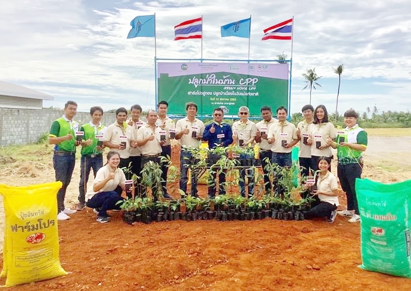 เนื่องในโอกาสวันเฉลิมพระชนมพรรษา 88 พรรษา สมเด็จพระนางเจ้าสิริกิติ์พระบรมราชินีนาถ พระบรมราชชนนีพันปีหลวง วันที่ 12 ส.ค. 2563 คุณจรูญ ชัยทัศน์ รองกรรมการผู้จัดการ พร้อมด้วย คุณบุญช่วย พึ่งตนเอง รองกรรมการผู้จัดการ และคุณรณชัย ภิรมกาญจนศักดิ์ รองกรรมการผู้จัดการ นำทีมพนักงานจิตอาสาร้านฟาร์มโปรสาขาอู่ทอง ตลอดจนทีมงานครบวงจรและปัจจัยการผลิตเขตตะวันตก และเขตใต้ ร่วมกันปลูกไม้ยืนต้นจำนวน 208 ต้นแบ่งเป็นต้นมะฮอกกานี 188 ต้น และต้นทุเรียนป่า 20 ต้น ในพื้นที่ 4 ไร่ เพื่อสร้างความร่มรื่น และเพิ่มพื้นที่สีเขียวรอบๆหน่วยงาน ตามโครงการปลูกป่าในบ้าน CPP (Green Home CPP)