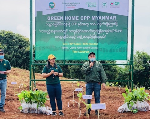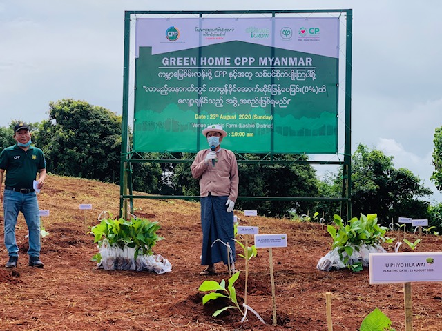 เมื่อวันที่ 23 สิงหาคม 2563 ธุรกิจเขตประเทศเมียนมา กลุ่มธุรกิจพืชครบวงจร(ข้าวโพด) จัดโครงการปลูกป่าในบ้าน Green home CPP Myanmar ที่สถานีวิจัยลาโช (Lashio farm) รัฐฉาน (Shan State) โดยมี คุณเจษฎา ลือวัฒนานนท์ รองกรรมการผู้จัดการ เป็นประธาน โครงการฯนี้ เป็นการปลูกไม้ยืนต้นเพื่อเพิ่มพื้นที่สีเขียว และดูแลสภาพแวดล้อม ตามนโยบายของเครือเจริญโภคภัณฑ์ที่มุ่งสู่การเป็นองค์กรที่ปลดปล่อยคาร์บอนไดออกไซต์สุทธิเป็นศูนย์(Carbon Neutral)ในปี 2030