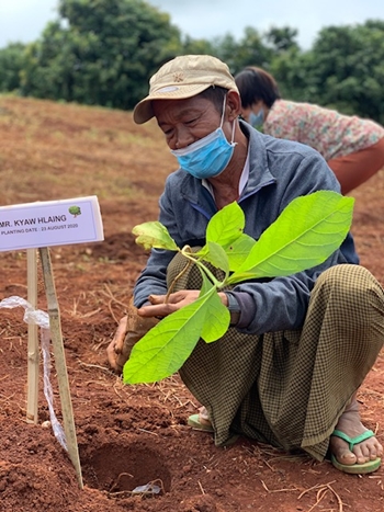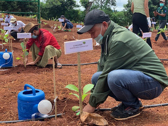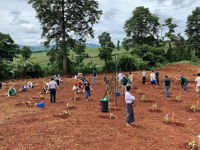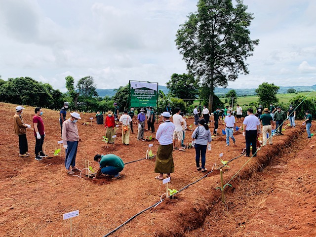 กิจกรรมครั้งนี้ ได้รับเกียรติจาก อู จ่อ มิน ส่อ (U Kyaw Myint Zaw) Deputy director of Northern Shan department of Agriculture พร้อมด้วยหน่วยงานราชการ ตัวแทนจำหน่ายและชุมชนในพื้นที่ หมู่บ้านแซนเปี้ยด (San Pyad Village) กว่า 50 คน ร่วมกันปลูกต้นสัก จำนวน 260 ต้น ต้นขี้เหล็ก จำนวน 40 ต้น และยังได้มอบต้นสักจำนวน 36 ต้นให้กับตัวแทนจำหน่ายและคนในชุมชนนำกลับไปปลูกในพื้นที่ของตนเอง