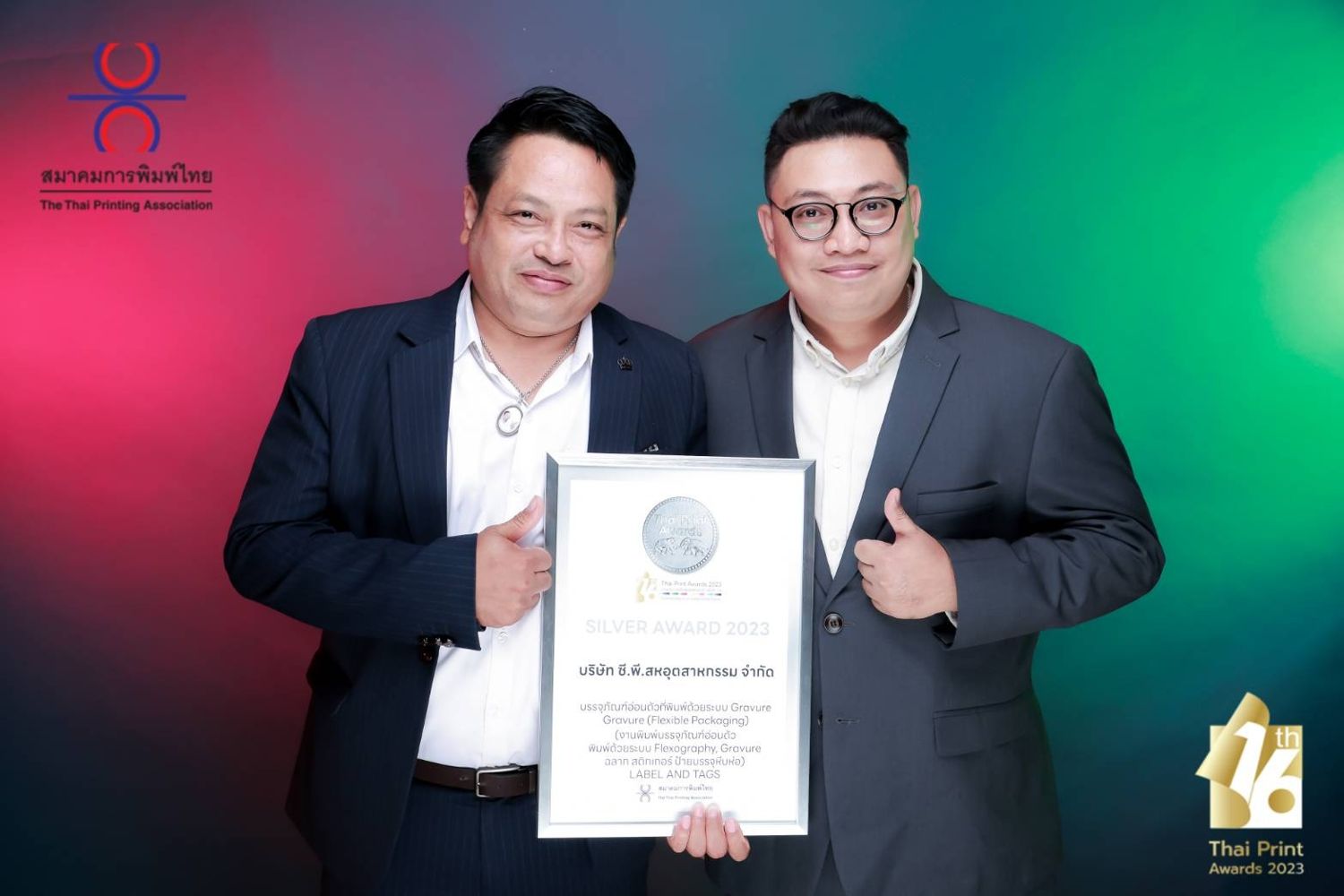 เมื่อวันที่ 13 กันยายน 2566 ที่ผ่านมา คุณสุรศักดิ์ เรืองธนู วิศวกร พร้อมด้วย คุณทวีศักดิ์ ลอยศักดิ์ ผู้จัดการแผนก หน่วยงานพิมพ์กราเวียร์ เป็นผู้แทน บริษัท ซี.พี. สหอุตสาหกรรม จำกัด กลุ่มธุรกิจบรรจุภัณฑ์ เครือเจริญโภคภัณฑ์ เข้าร่วมรับรางวัล Silver Award ด้านบรรจุภัณฑ์อ่อนตัวที่พิมพ์ด้วยระบบ Gravure จากงานประกวดสิ่งพิมพ์แห่งชาติครั้งที่ 16 (16th Thai Print Awards) โดยมี คุณเกรียงไกร เธียรนุกุล ประธานสภาอุตสาหกรรมแห่งประเทศไทย ให้เกียรติเป็นประธานในพิธีมอบรางวัล ณ ห้อง The Crystal Box ชั้น19 Gaysorn Urban Resort โดยการประกวดสิ่งพิมพ์แห่งชาติครั้งที่ 16 จัดขึ้นภายใต้แนวความคิด Connecting to a Sustainable Future การเชื่อมต่อกับอนาคตที่ยั่งยืนของอุตสาหกรรมการพิมพ์และบรรจุภัณฑ์ไทย