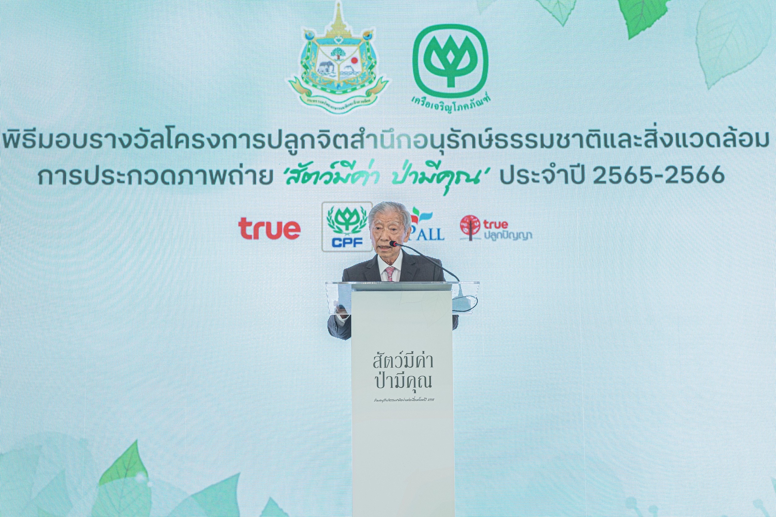 กรุงเทพฯ 4 เมษายน 2567 – มุ่งมั่นเดินหน้าปลูกจิตสำนึกเยาวชนและคนไทยทั้งประเทศ สร้างแรงบันดาลใจในการอนุรักษ์สัตว์ป่าและป่าไม้ ผ่านการประกวดภาพถ่าย ‘สัตว์มีค่า ป่ามีคุณ’ ต่อเนื่องมาเป็นปีที่ 29 โดยกระทรวงทรัพยากรธรรมชาติและสิ่งแวดล้อม ผนึกกำลังเครือเจริญโภคภัณฑ์ ด้วยการดำเนินงานของ ซีพีเอฟ ซีพีออล์ และทรู คอร์ปอเรชั่น จัดพิธีมอบรางวัลโครงการปลูกจิตสำนึกอนุรักษ์ธรรมชาติและสิ่งแวดล้อม การประกวดภาพถ่าย ‘สัตว์มีค่า ป่ามีคุณ’ ประจำปี 2565-2566 พร้อมจัดนิทรรศการภาพถ่ายอันทรงคุณค่า ประจำปี 2565 และ ปี 2566 ณ ลานกิจกรรมชั้น 1 และผนังโค้งชั้น 3 ณ หอศิลปวัฒนธรรมแห่งกรุงเทพมหานคร