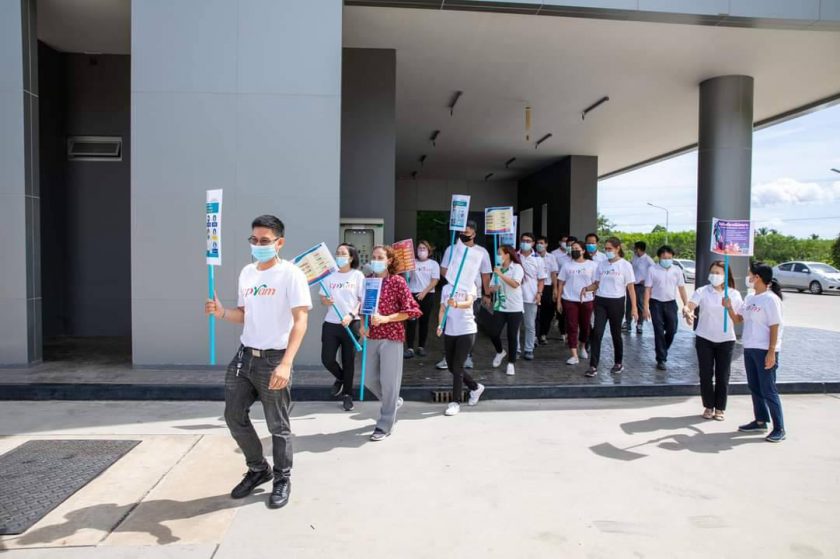 คุณมารุต นุชพุ่ม ผู้จัดการทั่วไป และคุณประภาส มุกดา รองผู้จัดการทั่วไป พร้อมด้วยผู้บริหาร และพนักงาน บริษัท ซีพีแรม จำกัด (สุราษฎร์ธานี) ยังคงปฏิบัติตาม 10 มาตรการป้องกันและเฝ้าระวัง Covid-19 ขององค์กรอย่างเคร่งครัด พร้อมกันนี้ยังได้ร่วมเดินรณรงค์เพื่อสร้างความตระหนักแก่ผู้บริหาร และพนักงานในการปฏิบัติตน และป้องกันการแพร่ระบาดของโรค Covid-19 ณ บริษัท ซีพีแรม จำกัด (สุราษฎร์ธานี)