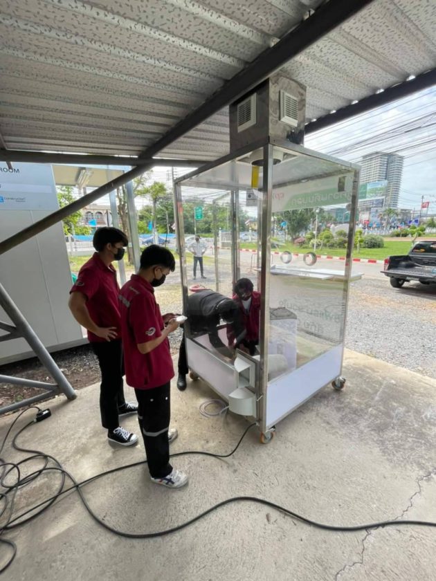 คุณชุมพล ลีละศุภพงษ์ ผู้จัดการทั่วไปอาวุโส พร้อมด้วยผู้บริหาร และเจ้าหน้าที่ บริษัท ซีพีแรม จำกัด (ชลบุรี) ร่วมส่งมอบตู้ความดันอากาศบวก (Positive Pressure Room) จำนวน 2 ตู้ พร้อมด้วยอาหารพร้อมรับประทาน และน้ำดื่ม แก่สำนักงานสาธารณสุขอำเภอศรีราชา จ.ชลบุรี ภายใต้โครงการ “ซีพีแรม รวมใจ สู้ภัยโควิด-19” โดยได้รับเกียรติจาก นายกมนต์ อินทรวิชัย นายแพทย์สาธารณสุขอำเภอศรีราชา และนายเมธี ส่งเสริม ผู้ช่วยนายแพทย์สาธารณสุขอำเภอศรีราชา เป็นผู้รับมอบ เพื่อเพิ่มประสิทธิภาพในการเฝ้าระวังเชิงรุก และศักยภาพในการบริการตรวจหาเชื้อโควิด-19 ให้กับประชาชนในพื้นที่ ณ สำนักงานสาธารณสุขอำเภอศรีราชา จ.ชลบุรี