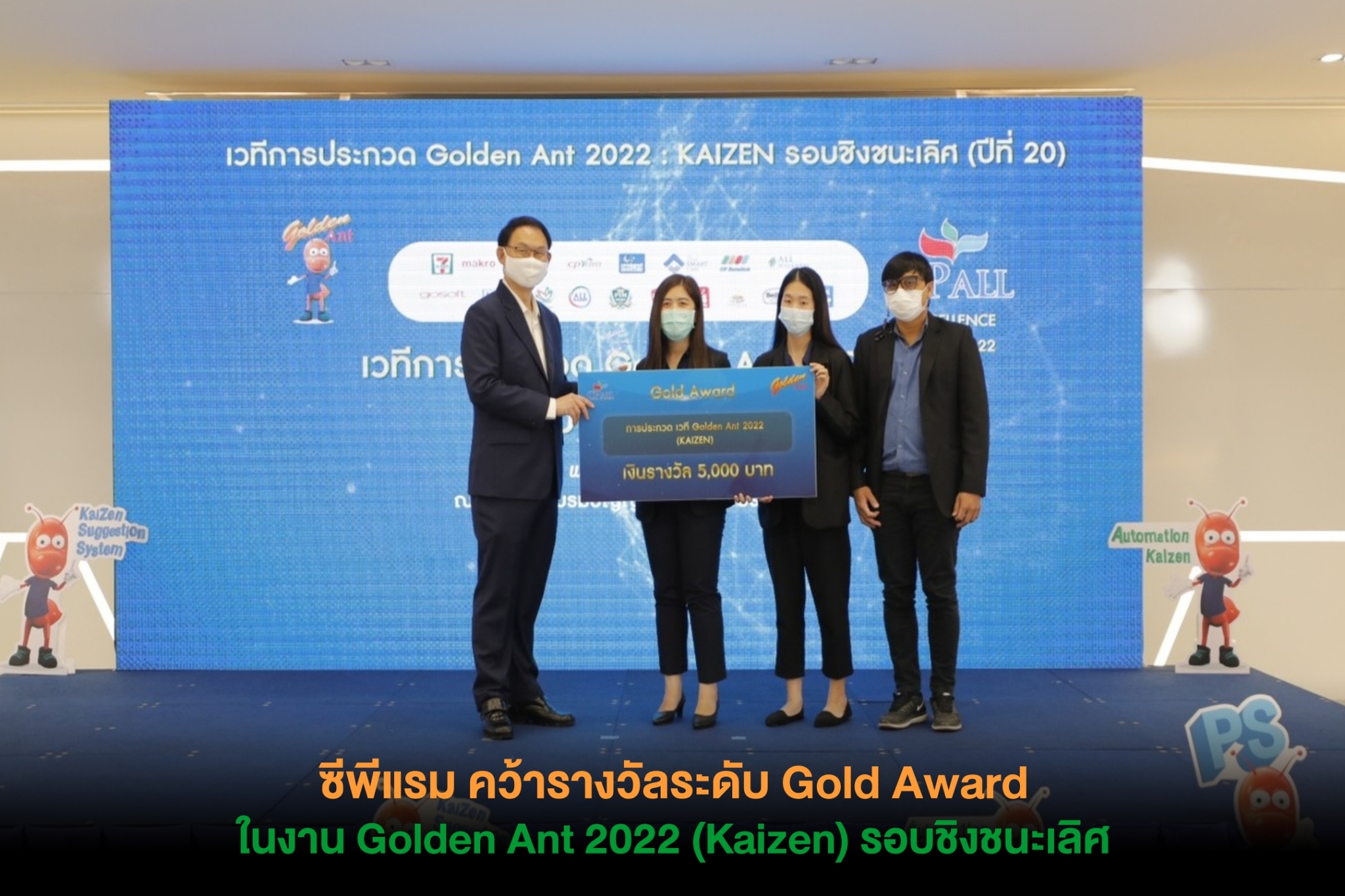 คณะผู้บริหาร และเจ้าหน้าที่ บริษัท ซีพีแรม จำกัด เข้าร่วมการนำเสนอผลงาน Kaizen ในงาน Golden Ant 2022 : Kaizen รอบชิงชนะเลิศ ปีที่ 20 คว้ารางวัลระดับ Gold Award ประเภท Kaizen Automation โดยกลุ่ม หยอดกระจาย เรื่องเพิ่มประสิทธิภาพการประกอบเบอร์เกอร์ด้วยเครื่องหยอดซอสอัตโนมัติ จากฝ่ายบรรจุสินค้า 1A ซีพีแรม (ลาดหลุมแก้ว) ณ ศูนย์ฝึกอบรมปัญญธารา ถนนแจ้งวัฒนะ