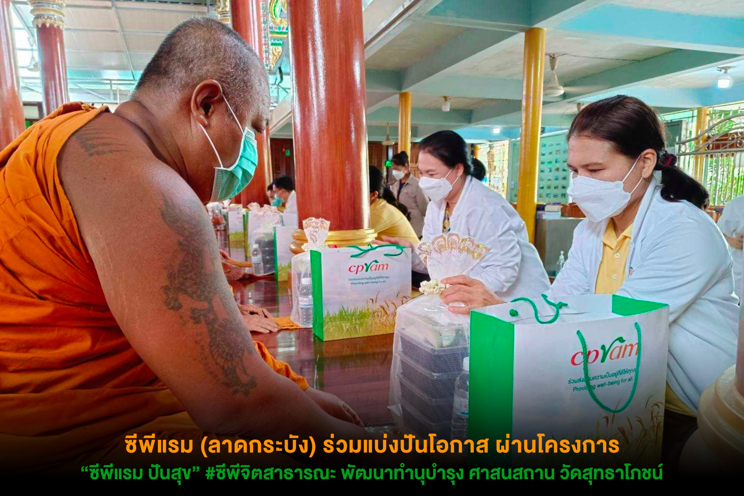 คุณชลธิชา เดชะชาติ ผู้จัดการทั่วไป พร้อมด้วยผู้บริหาร และพนักงานจิตสาธารณะ บริษัท ซีพีแรม จำกัด (ลาดกระบัง) ร่วมดำเนินโครงการ “ซีพีแรม ปันสุข” #ซีพีจิตสาธารณะ พัฒนาทำนุบำรุง ศาสนสถาน วัดสุทธาโภชน์ โดยร่วมกับชุมชน คณะครู และนักเรียนโรงเรียนวัดสุทธาโภชน์ สำนักงานนิคมอุตสาหกรรมลาดกระบัง และภาคเอกชน ร่วมส่งมอบอาหารปลอดภัย ให้แก่กลุ่มคนเปราะบาง ทำความสะอาดบริเวณวัด และทำบุญถวายแด่พระภิกษุสงฆ์ ณ วัดสุทธาโภชน์ เขตลาดกระบัง กรุงเทพฯ
