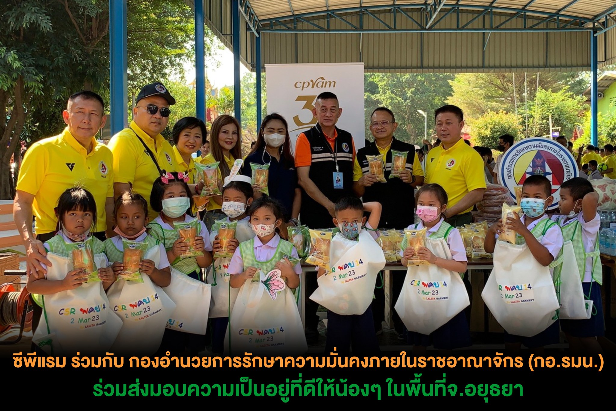 คณะผู้บริหาร และพนักงาน บริษัท ซีพีแรม จำกัด ร่วมกับ หลักสูตรพัฒนาสัมพันธ์เครือข่ายความมมั่นคงระดับผู้บริหาร (พคบ.) รุ่นที่ 14 กองอำนวยการรักษาความมั่นคงภายในราชอาณาจักร (กอ.รมน.) จัดกิจกรรม “ซีพีแรม ปันสุข” เพื่อส่งมอบเครื่องอุปโภค บริโภค และอุปกรณ์การเรียนแก่เด็กนักเรียน และกลุ่มคนเปราะบาง ในพื้นที่จังหวัดพระนครศรีอยุธยา
