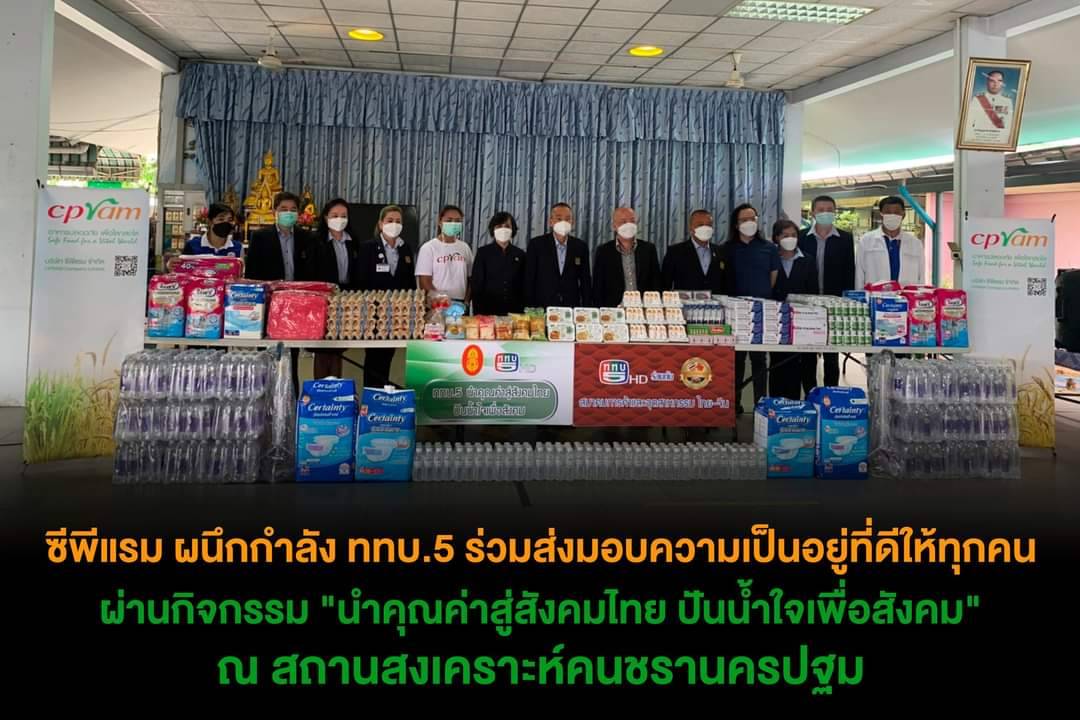 พนักงานจิตสาธารณะ บริษัท ซีพีแรม จำกัด ร่วมกับ สถานีวิทยุโทรทัศน์กองทัพบกช่อง 5 จัดกิจกรรม “นำคุณค่าสู่สังคมไทย ปันน้ำใจเพื่อสังคม” ในการนี้ ได้รับเกียรติจาก พลเอกวิสันติ สระศรีดา กรรมการผู้อำนวยการใหญ่ พร้อมด้วยผู้บริหาร สถานีวิทยุโทรทัศน์กองทัพบก คุณหลิน เหว่ย ประธานบริหารสมาคมการค้าและอุตสาหกรรมไทย – จีน คุณณรงค์ มั่นศรีจันทร์ หัวหน้าสำนักปลัดองค์การบริหารส่วนจังหวัดนครปฐม และพันธมิตรทุกภาคส่วน ให้เกียรติร่วมกิจกรรมดังกล่าว ซึ่งกิจกรรมดังกล่าวจัดขึ้นเพื่อส่งมอบเครื่องอุปโภค บริโภค และอุปกรณ์ป้องกันโควิด-19 ช่วยเหลือแก่ผู้สูงอายุ และกลุ่มคนเปราะบาง ตั้งแต่อายุ 60 ปี ขึ้นไป จำนวน 52 คน ที่มีภูมิลำเนาอยู่ในพื้นที่จังหวัดนครปฐม, นนทบุรี, ปทุมธานี, สมุทรปราการ และสมุทรสาคร มุ่งหวังบรรเทาผลกระทบจากสถานการณ์โควิด-19