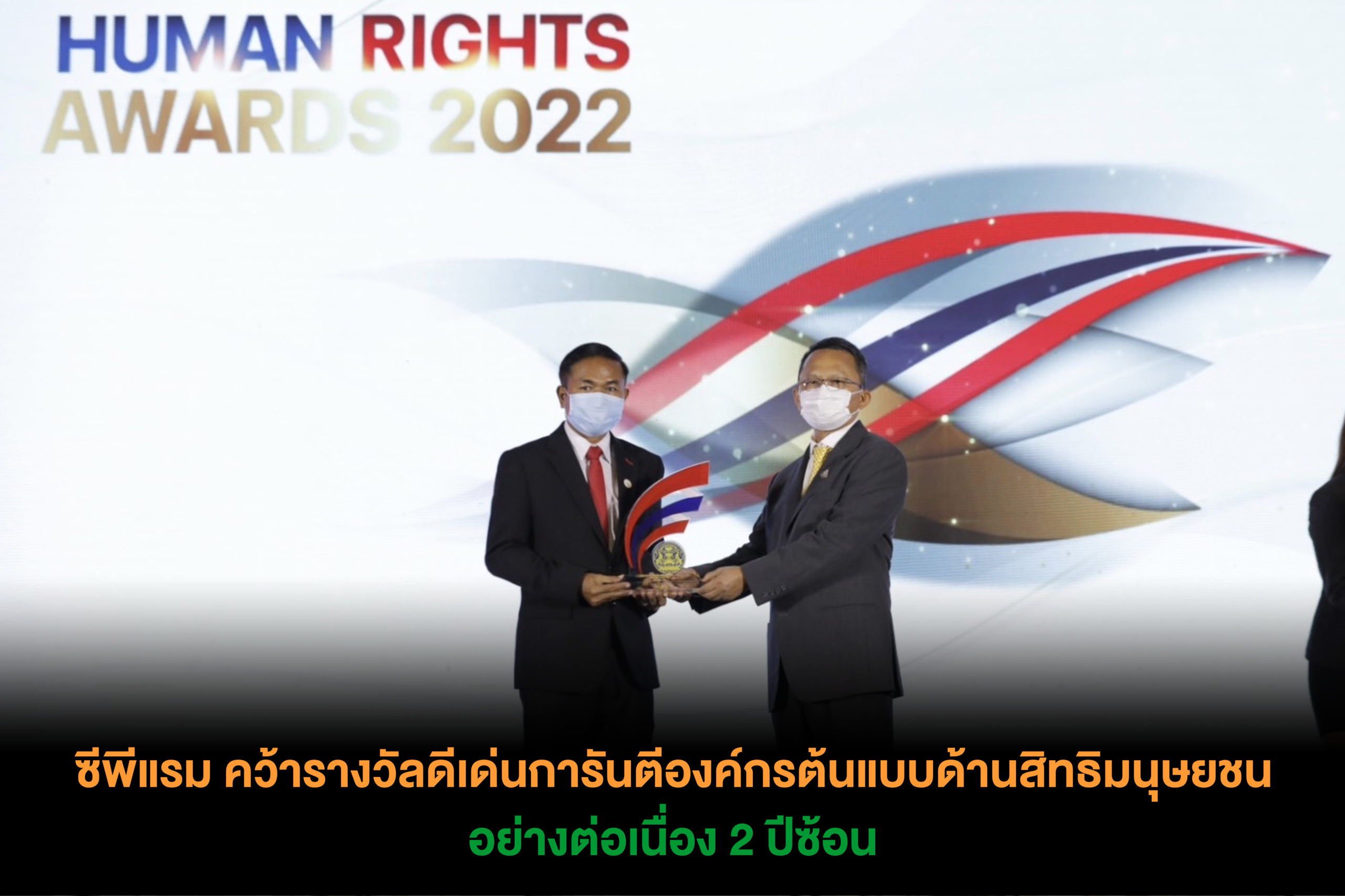 บริษัท ซีพีแรม จำกัด ผู้ผลิตอาหารพร้อมรับประทาน คว้ารางวัลในฐานะองค์กรต้นแบบด้านสิทธิมนุษยชน ประจำปี 2565 ในระดับดีเด่น 2 ปีซ้อน ประเภทองค์กรธุรกิจขนาดใหญ่ จากกรมคุ้มครองสิทธิและเสรีภาพ กระทรวงยุติธรรม โดยคุณเดโช ปลื้มใจ ผู้จัดการทั่วไปอาวุโส เป็นตัวแทนในการรับมอบ ซึ่งรางวัลดังกล่าว มอบให้กับองค์กรที่ดำเนินงานโดยเคารพในหลักสิทธิมนุษยชน รวมถึงเป็นแบบอย่างอันดีให้กับองค์กรอื่น ในการเสริมสร้างสังคมแห่งการเคารพสิทธิมนุษยชนอย่างยั่งยืน