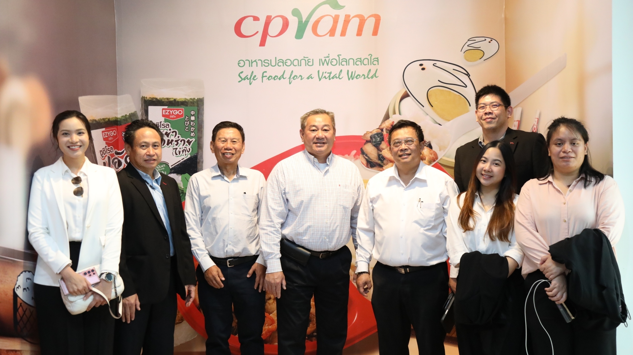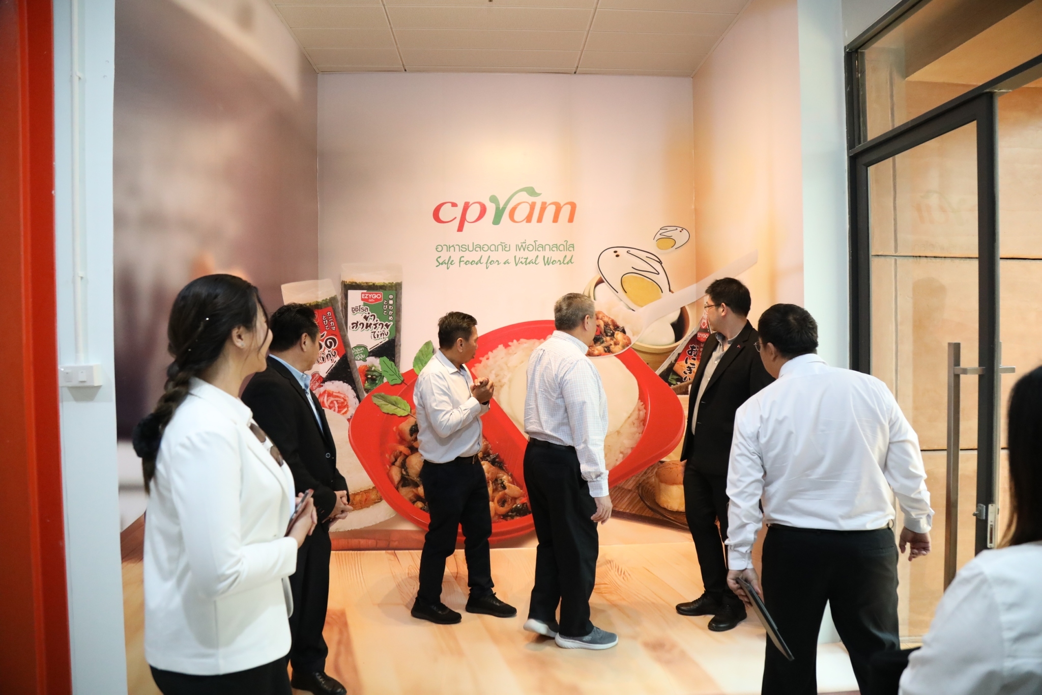 คุณปิยโชค ปิยางสุ รองกรรมการผู้จัดการอาวุโส พร้อมด้วย คุณณัชโชติ เหมทอง รองกรรมการผู้จัดการ คุณพิภักดิ์ จรูญลักษณ์คณา ผู้ช่วยผู้จัดการทั่วไป ผู้บริหารและพนักงาน บริษัท ซีพีแรม จำกัด ให้การต้อนรับ Mr. Nien Duong Senior Vice President CP North America ในโอกาสเยี่ยมชมนวัตกรรมกระบวนการผลิตอาหารพร้อมรับประทานที่ทันสมัยแห่งหนึ่งของโลก