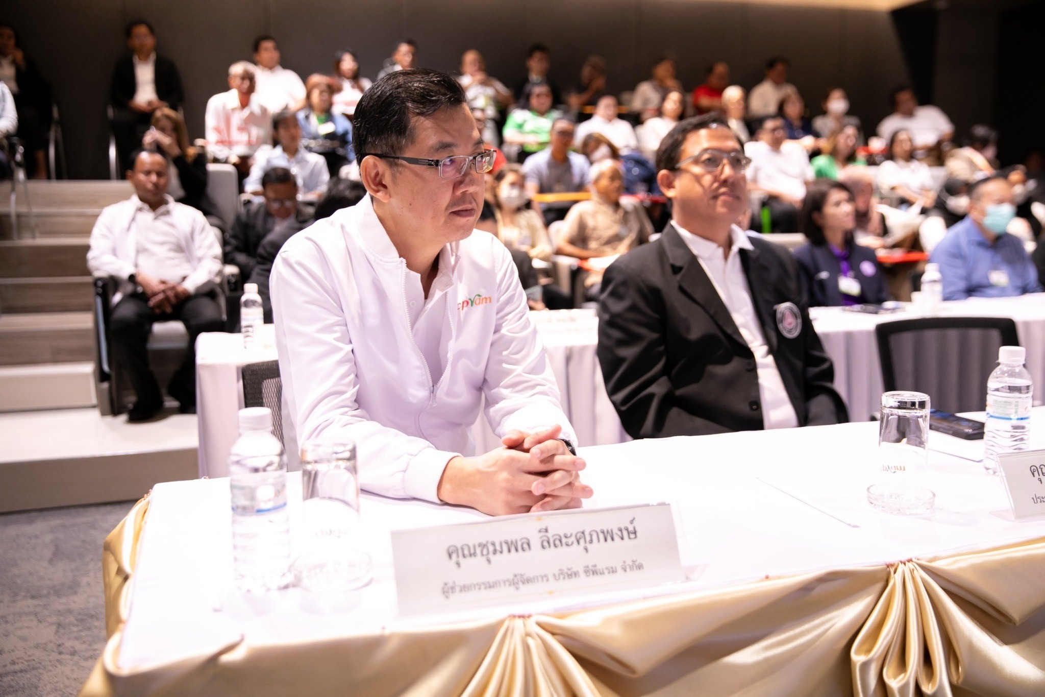 คุณชุมพล ลีละศุภพงษ์ ผู้ช่วยกรรมการผู้จัดการ บริษัท ซีพีแรม จำกัด พร้อมด้วยคุณเดโช ปลื้มใจ ผู้จัดการทั่วไปอาวุโสคุณสุปราณี ชนะชัย ผู้จัดการทั่วไปอาวุโสคุณณัฐสิทธิ์ อึ๊งภากรณ์ ผู้จัดการทั่วไปอาวุโสคุณชัยเกียรติ ผูกเกษร ผู้จัดการทั่วไปคุณมารุต นุชพุ่ม ผู้จัดการทั่วไป และผู้บริหาร บริษัท ซีพีแรม จำกัด ร่วมงานสัมมนาเจาะลึกยุทธศาสตร์ FOOD 3S (Food Safety, Food Security, Food Sustainability) ดันภาคใต้เป็นศูนย์กลางอาหารของเอเซีย โดยได้รับเกียรติจากคุณเจริญ แก้วสุกใส ประธานกลุ่มอุตสาหกรรมอาหารและเครื่องดื่ม สภาอุตสาหกรรมแห่งประเทศไทยคุณวัชรินทร์ ไชยานุพงศ์ อุตสาหกรรมจังหวัดสุราษฎร์ธานีคุณตริน พงษ์เภตรา ประธานสภาอุตสาหกรรมจังหวัดสุราษฎร์ธานีคุณสุรินทร์ สิริชยานนท์ ประธานสภาอุตสาหกรรมจังหวัดนครศรีธรรมราช และหัวหน้าส่วนราชการในพื้นที่ภาคใต้ ร่วมงานในครั้งนี้ด้วย ณ บริษัท ซีพีแรม จำกัด (สุราษฎร์ธานี)