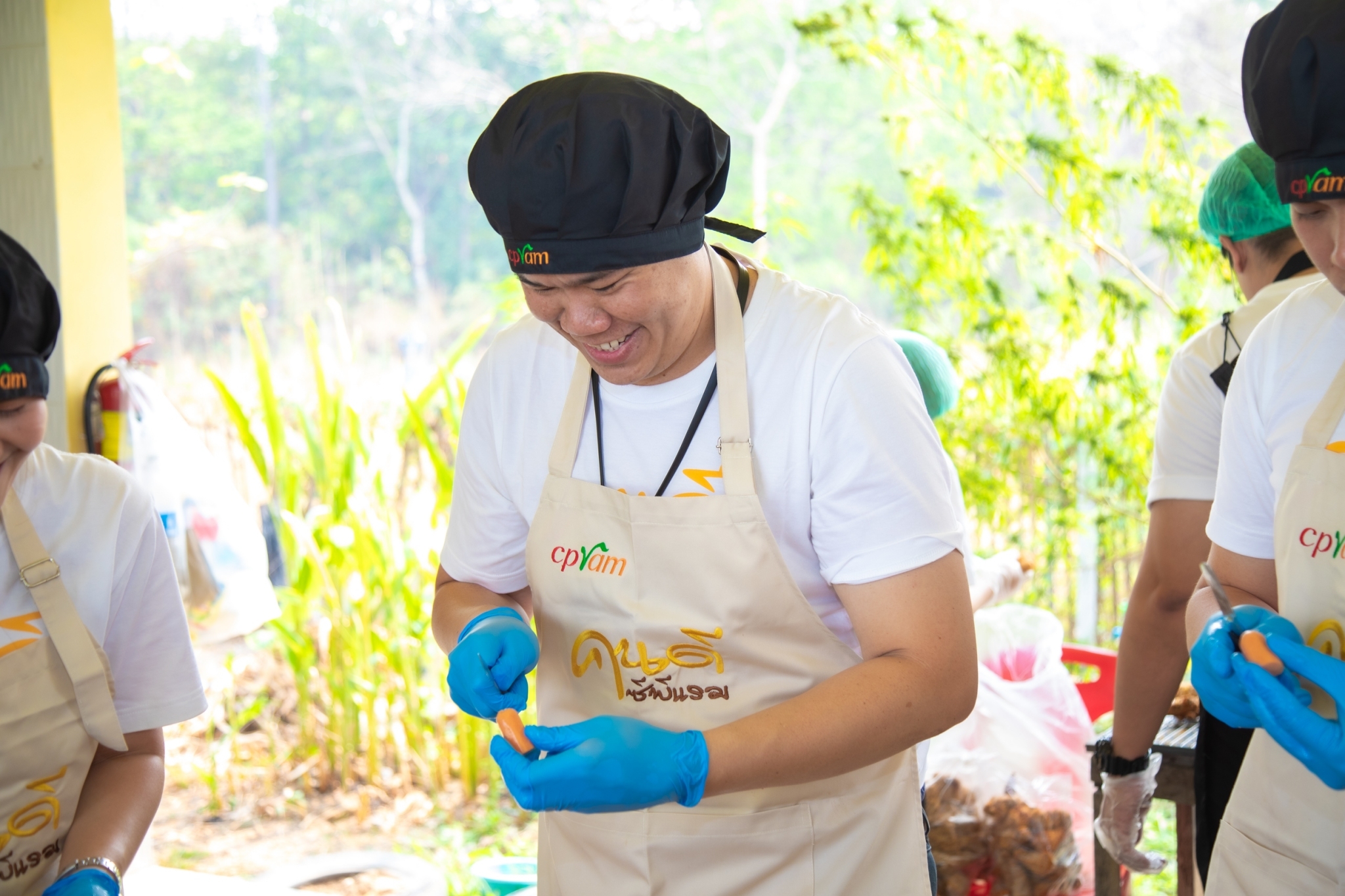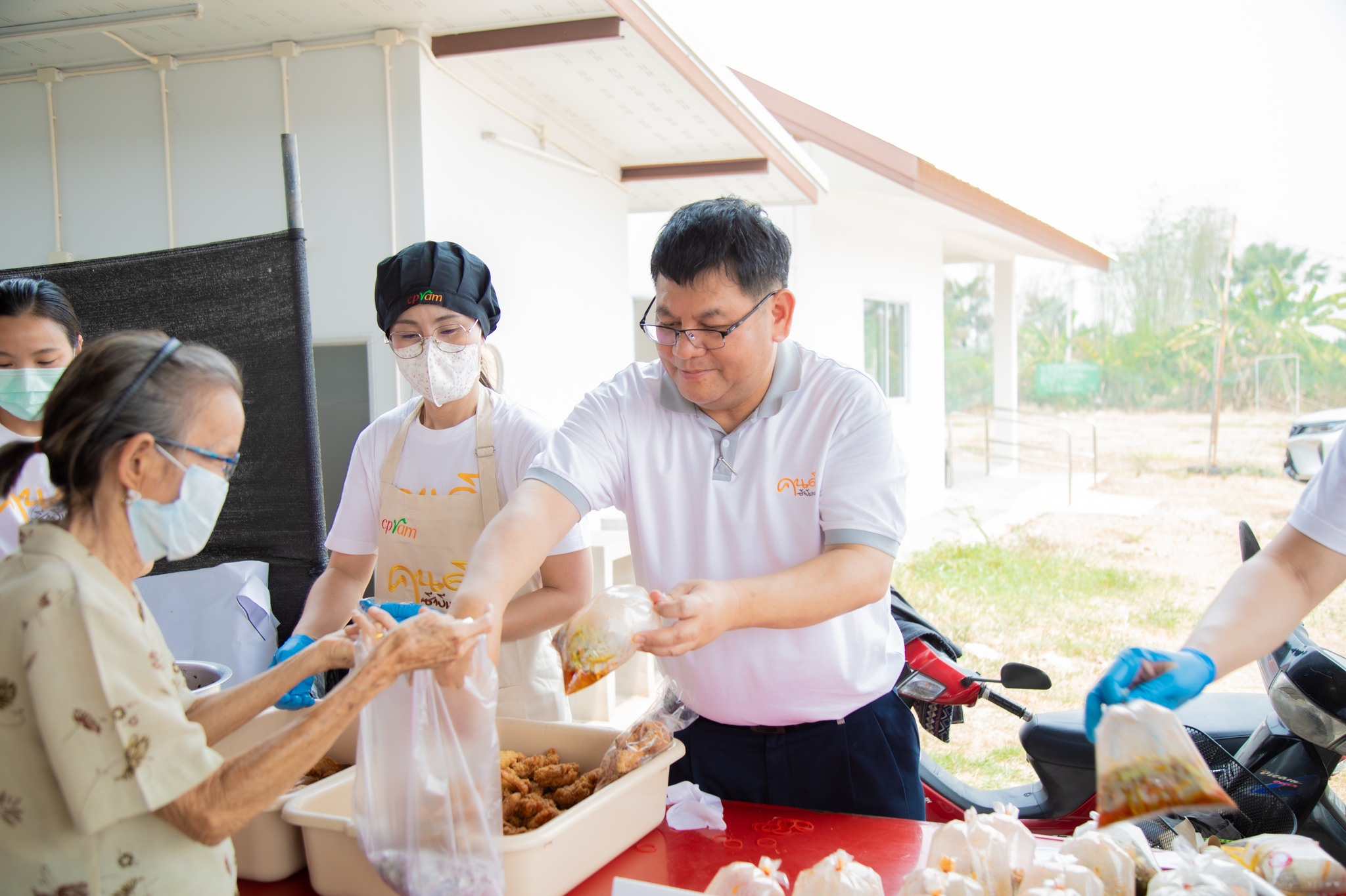 คุณกอบชัย คงทวี ผู้จัดการทั่วไปอาวุโส พร้อมด้วย คุณชัญญรัช พีราวัชร ผู้จัดการทั่วไปอาวุโส บริษัท ซีพีแรม จำกัด พร้อมพนักงานจิตสาธารณะ ในโครงการ “คนดี ซีพีแรม” ผนึกกำลัง มูลนิธิสโกลารส์ ออฟ ซัสทีแนนซ์ (SOS) และมูลนิธิตะวันฉาย จังหวัดลำพูน ร่วมทำครัวรังสรรค์เมนูใหม่จากอาหารส่วนเกิน ภายใต้โครงการ “คนดีซีพีแรม x ครัวรักษ์อาหาร SOS” เพื่อลดปัญหาการเกิด Food Waste และปัญหาอาหารส่วนเกิน ซึ่งเป็นอาหารที่เกินจากความต้องการ แต่สามารถนำไปบริโภคต่อได้ โดยร่วมส่งมอบให้กับชุมชน และกลุ่มเปราะบาง ได้แก่ ชุมชนหนองหนาม, ชุมชนกอลุง และชุมชนกอข่อย อำเภอเมือง จังหวัดลำพูน โดยได้ส่งมอบอาหารจำนวน 2,050 มื้อ และสามารถลดการปล่อยก๊าซคาร์บอนไดออกไซด์จากอาหารส่วนเกิน 1,132.40 กิโลกรัมคาร์บอนไดออกไซด์เทียบเท่า (kgCO2e) ในการนี้ ได้รับเกียรติจาก คุณดนุชา สมบัตินันท์ ผู้จัดการฝ่ายปฏิบัติการระดับภูมิภาค มูลนิธิสโกลารส์ ออฟ ซัสทีแนนซ์ (SOS) สาขาเชียงใหม่ พร้อมด้วย คุณระธี ไชยพรพัฒนา ประธานมูลนิธิตะวันฉาย, คุณประทิน จักขุเรือง กำนันตำบลหนองหนาม, คุณณัฐวุฒิ อุประโจง นายกองค์การบริหารส่วนตำบลหนองหนาม ชาวบ้านชุมชนหนองหนาม, ชุมชนกอข่อย และชุมชนกอลุง เข้าร่วมโครงการในครั้งนี้ ณ มูลนิธิตะวันฉาย อำเภอเมือง จังหวัดลำพูน
