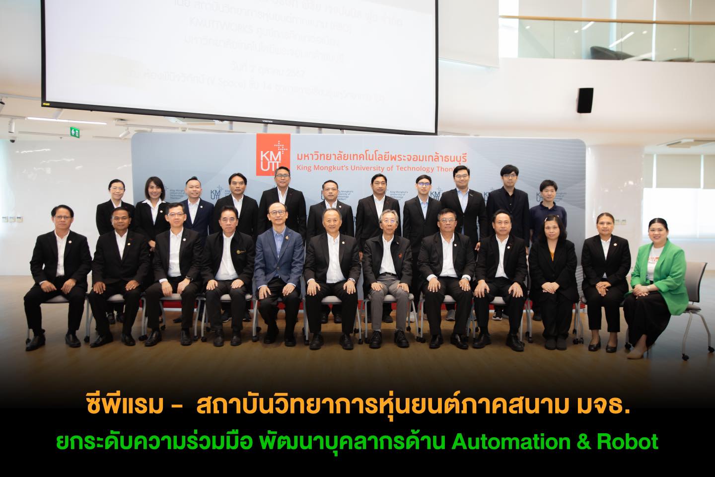 บริษัท ซีพีแรม จำกัด ร่วมกับ สถาบันวิทยาการหุ่นยนต์ภาคสนาม และสํานักวิจัยและบริการวิทยาศาสตร์และเทคโนโลยี (สวท.) มหาวิทยาลัยเทคโนโลยีพระจอมเกล้าธนบุรี (มจธ.) จัดพิธีเปิดโครงการอบรมระยะสั้นเพื่อพัฒนาบุคลากรด้าน Automation & Robot อย่างเข้มข้น ภายใต้โครงการ EEC Model Type B โดยมีวัตถุประสงค์เพื่อยกระดับทักษะบุคลากรให้สามารถนำความรู้ด้านวิทยาศาสตร์และเทคโนโลยี รวมถึงวิศวกรรมขั้นสูงไปประยุกต์ใช้ในการทำงานจริง เพื่อเพิ่มประสิทธิภาพการผลิตและตอบโจทย์ความต้องการของอุตสาหกรรมในยุคปัจจุบัน