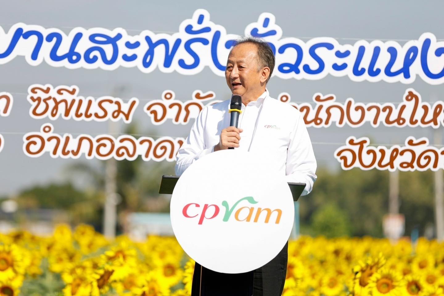 คุณวิเศษ วิศิษฏ์วิญญู กรรมการผู้จัดการ บริษัท ซีพีแรม จำกัด กล่าวว่า “บริษัท ซีพีแรม จำกัด เป็นองค์กรที่มีสำนักงานใหญ่ตั้งอยู่ในจังหวัดปทุมธานี ซึ่งเป็นที่รู้จักกันโดยทั่วกันว่าเป็นอู่ข้าวอู่น้ำ ของประเทศ มีดินดี มีแหล่งน้ำที่อุดมสมบูรณ์ ซีพีแรมเป็นผู้ผลิตและจัดจำหน่ายอาหารพร้อมรับประทาน ได้เล็งเห็นความสำคัญของเกษตรกรรม ซึ่งเป็นฐานรากของห่วงโซ่อุปทานอาหาร เราจึงได้จัดตั้ง “ศูนย์วิชาการเกษตร ซีพีแรม” ขึ้น ดำเนินการศึกษาและทดลองด้านการเกษตร เพื่อนำเอาองค์ความรู้ถ่ายทอดและส่งเสริมเกษตรกรขึ้นมา ทำให้ปัจจุบันเรามีเกษตรกรผู้เป็นพันธมิตร ในโครงการ “เกษตรกร คู่ชีวิต” อยู่ทั่วประเทศ ในทุกที่ที่โรงงานซีพีแรมตั้งอยู่ ศูนย์วิชาการเกษตรซีพีแรม ยังมีอีกบทบาทหนึ่งในการสนับสนุนวิสัยทัศน์องค์กร ในการส่งมอบสุขภาพและความเป็นอยู่ที่ดีต่อสังคม จึงได้ดำเนินงานโครงการทานตะวันบานสะพรั่งทั่วระแหงขึ้น ซึ่งครั้งนี้เป็นครั้งที่ 5 แล้ว โครงการนี้เป็นโครงการสร้างความสุขและให้ความรู้แก่ชุมชนและสังคม สามารถมาศึกษาความรู้ด้านการเกษตร จากแปลงสาธิตการเกษตร โครงการยังส่งเสริมเศรษฐกิจชุมชน โดยมีร้านค้าชุมชนมาร่วมจำหน่ายผลิตผลของชุมชนอีกด้วย นับเป็นแลนด์มาร์กการท่องเที่ยวตามฤดูกาลอีกแห่งหนึ่งของจังหวัดปทุมธานี การดำเนินโครงการดังกล่าวนี้ จะเป็นประโยชน์อย่างยิ่งต่อชุมชน และผู้ที่เข้า มาเยี่ยมชม อีกทั้งเสริมสร้างความสุข ความมั่นคง และยั่งยืนให้สังคมสืบไป”