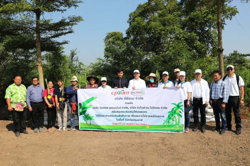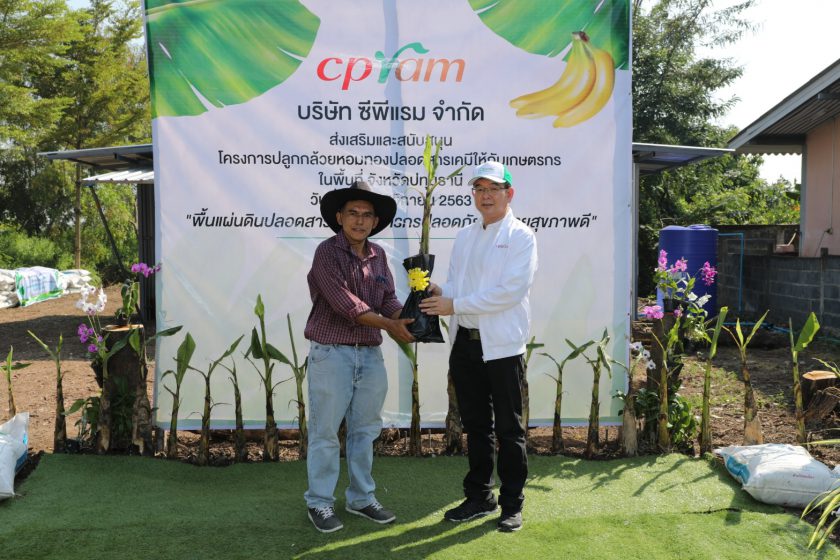 คุณธีรพันธุ์ ลักษณาภิรมย์ ผู้ช่วยกรรมการผู้จัดการ พร้อมด้วยคุณศิริวรรณ จวงตระกูล ผู้จัดการทั่วไปอาวุโส และคณะผู้บริหารระดับสูง พนักงาน บริษัท ซีพีแรม จำกัด (ลาดกระบัง) ลงพื้นที่จังหวัดปทุมธานี ดำเนินโครงการนำร่อง “ส่งเสริมและสนับสนุนเกษตรกรปลูกกล้วยหอมทองปลอดสารเคมี” โดยสนับสนุนหน่อพันธุ์กล้วยหอมทอง กว่า 900 หน่อ และปุ๋ยอินทรีย์ชีวภาพกว่า 10,000 กิโลกรัม ณ พื้นที่ตำบลคลองห้า อำเภอคลองหลวง จังหวัดปทุมธานี