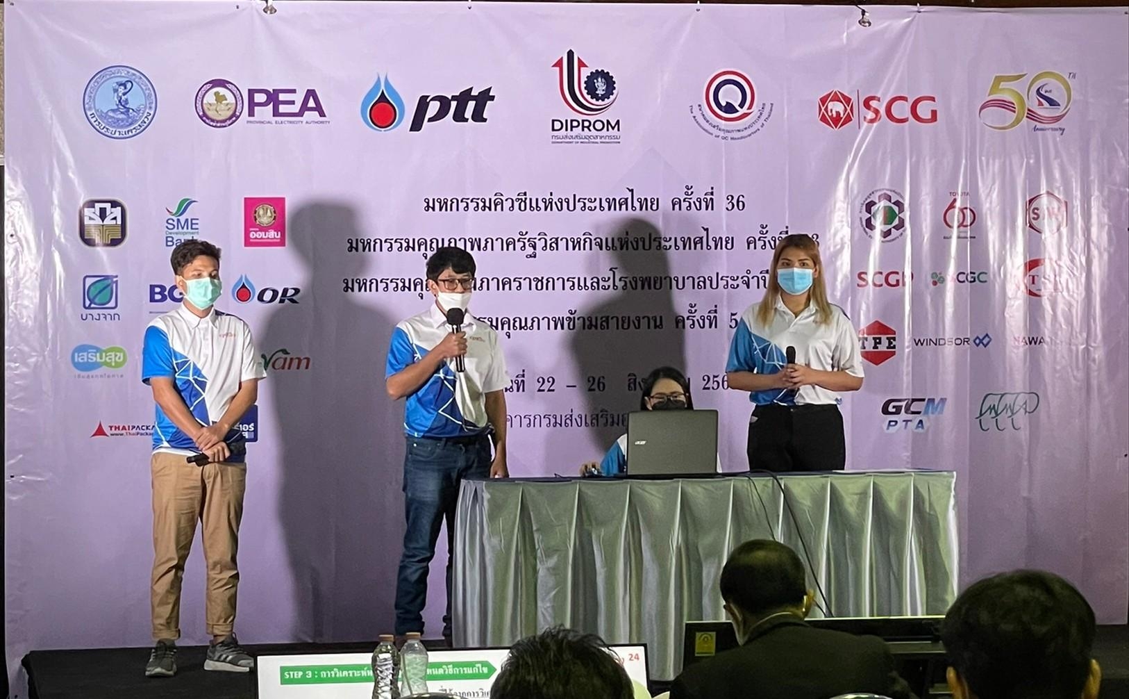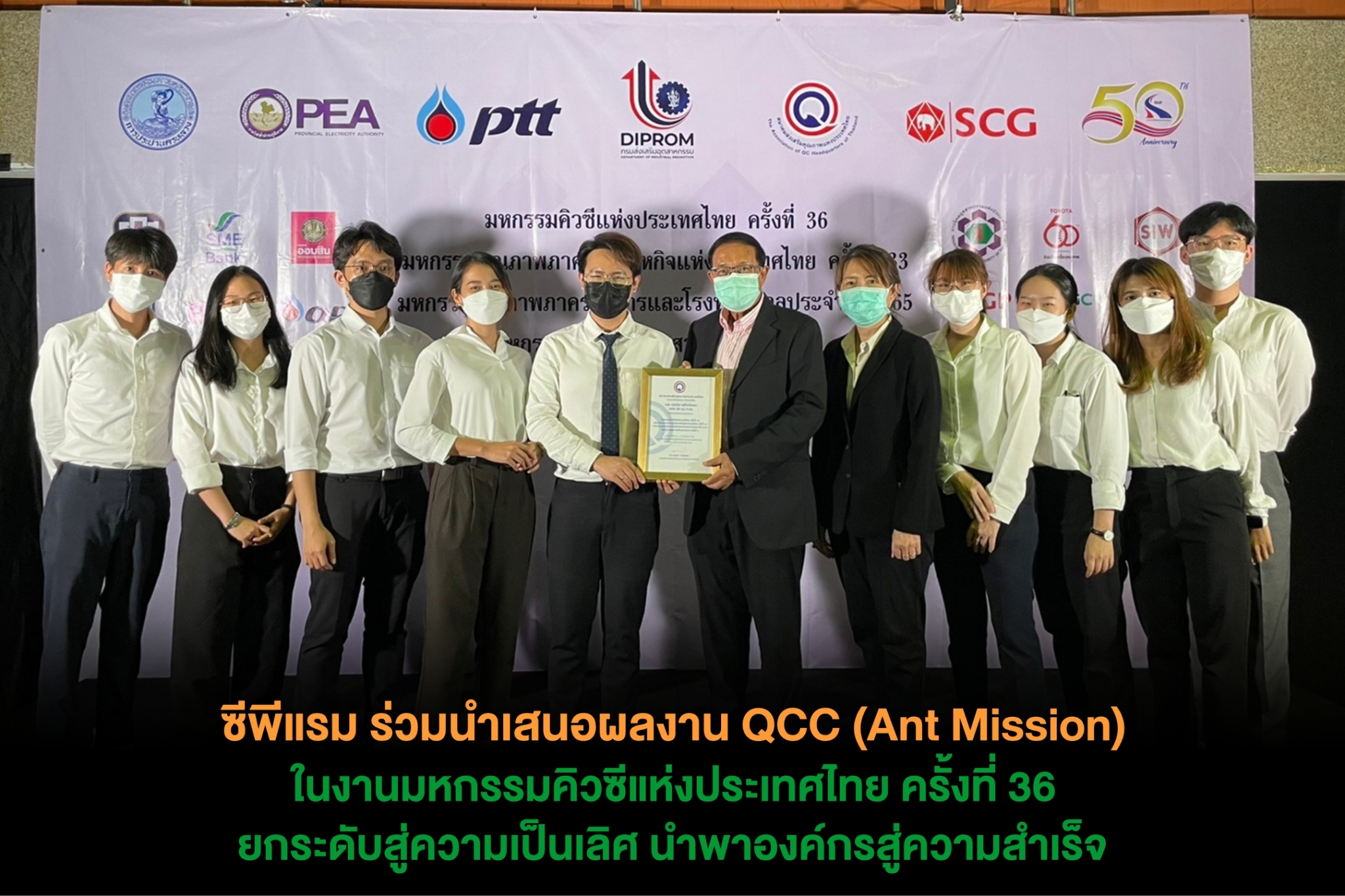 คุณรุ่งรัศมี ปิยางสุ ผู้จัดการทั่วไปอาวุโส พร้อมด้วย คุณภัทราวุธ ก้อนทอง รองผู้จัดการทั่วไป พร้อมผู้บริหาร และเจ้าหน้าที่ บริษัท ซีพีแรม จำกัด ให้เกียรติร่วมนำเสนอผลงาน ในงานมหกรรมคิวซีแห่งประเทศไทย ครั้งที่ 36 รอบสุดท้าย โดยมีสมาชิกกลุ่ม QCC (Ant Mission) นำเสนอผลงาน จำนวน 4 กลุ่ม ดังนี้