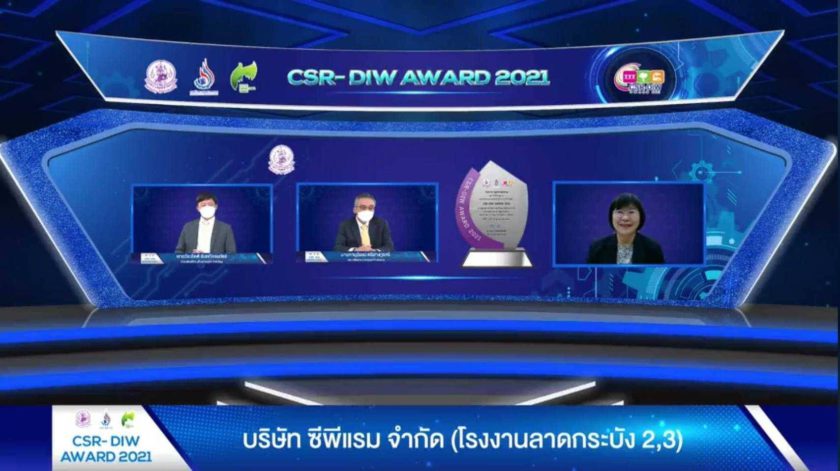 และบริษัท ซีพีแรม จำกัด (ชลบุรี) รับรางวัล CSR-DIW Continuous ปี 2564