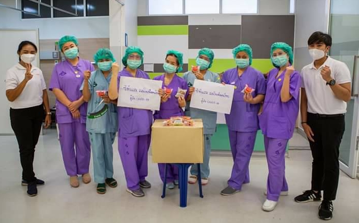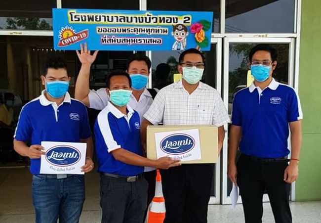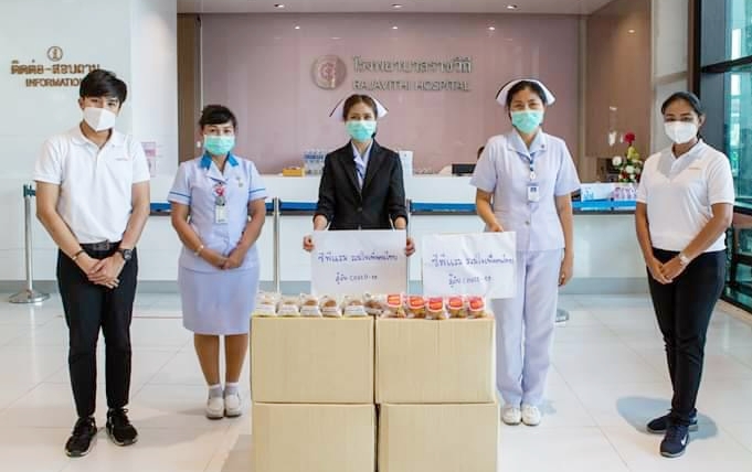 ได้ส่งมอบอาหารพร้อมรับประทาน เบเกอรี่ และน้ำดื่มให้กับโรงพยาบาลและสถาบันต่างๆ อาทิ โรงพยาบาลจุฬาลงกรณ์ สภากาชาดไทย, โรงพยาบาลราชวิถี, โรงพยาบาลรามาธิบดี, โรงพยาบาลวชิรพยาบาล, โรงพยาบาลตำรวจ, โรงพยาบาลเลิศสิน, โรงพยาบาลผู้สูงอายุบางขุนเทียน, โรงพยาบาลบางบัวทอง 2, สถาบันบำราศนราดูร, สถาบันป้องกันควบคุมโรคเขตเมือง กรมควบคุมโรค เป็นต้น