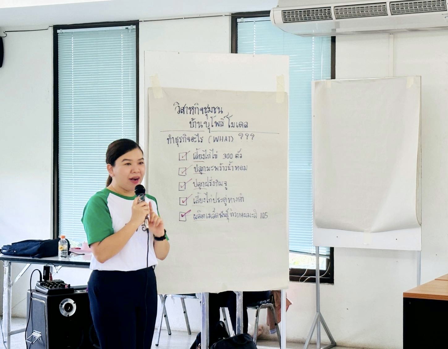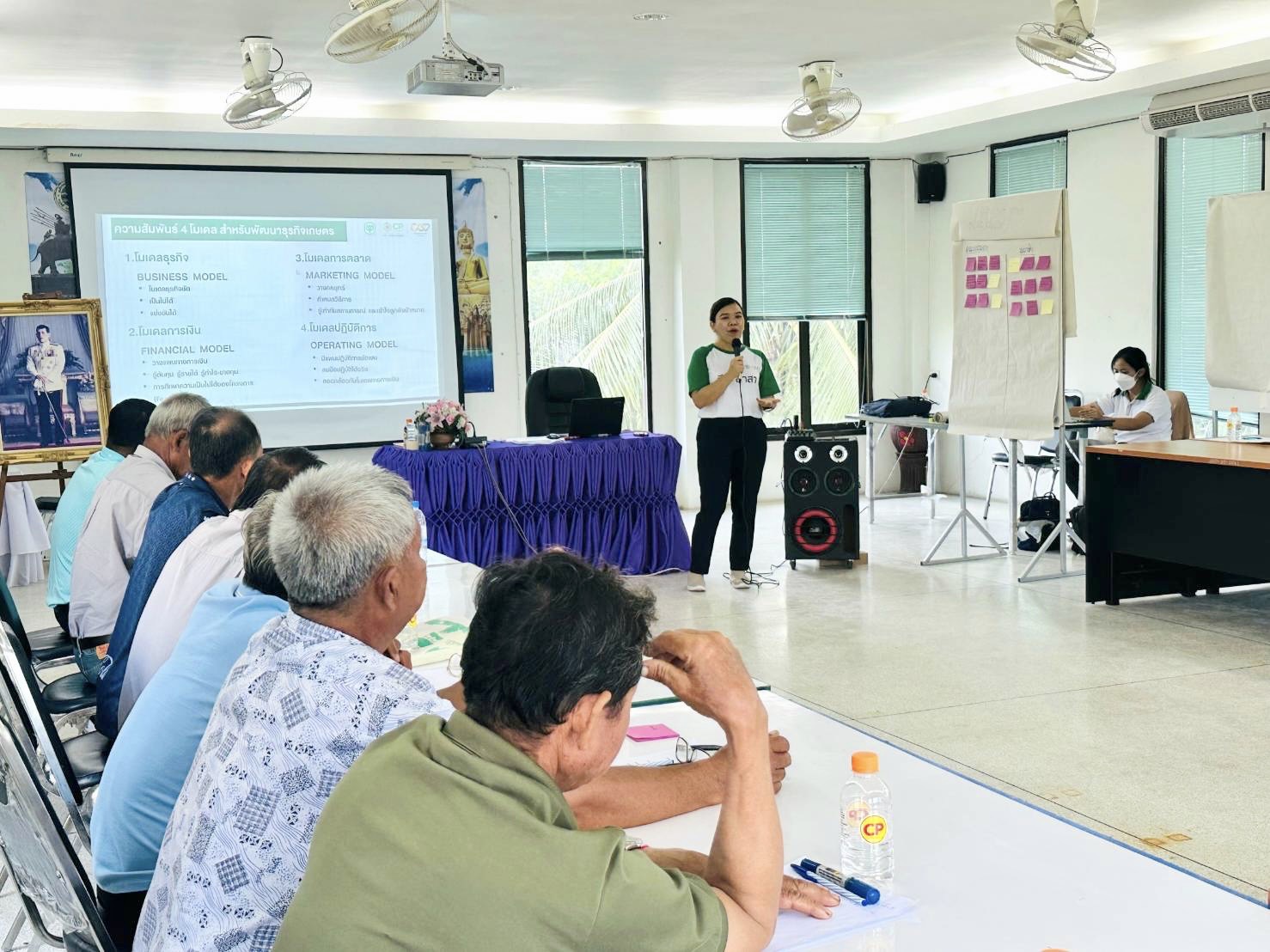 กิจกรรรมอบรมในครั้งนี้ได้รับเกียรติจากคุณพิไลลักษณ์ พิชัยวัตต์ ผู้ช่วยกรรมการผู้จัดการ ด้านพัฒนาความยั่งยืนภาครัฐและกิจการสัมพันธ์ เครือเจริญโภคภัณฑ์ ร่วมเป็นวิทยากรบรรยายให้ความรู้เตรียมความพร้อมสู่การดำเนินธุรกิจชุมชนผ่านโมเดลธุรกิจ 5 รูปแบบ ได้แก่ ธุรกิจไก่ไข่เพื่อจำหน่ายไข่คุณภาพสำหรับชุมชน มะพร้าวน้ำหอม ฝรั่งกิมจู ไก่ประดู่หางดำ และการผลิตและจำหน่ายเมล็ดพันธุ์ข้าวหอมมะลิ 105