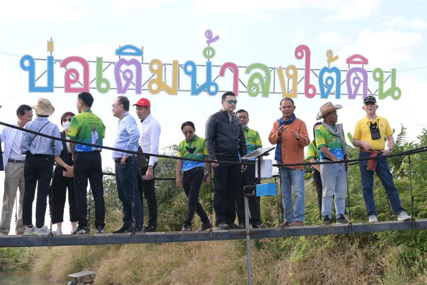 จากนั้น คุณสุภกิตและคณะฯ เดินทางไปองค์การบริหารส่วนตำบลเก่าขาม อ.น้ำยืน ศึกษาระบบธนาคารน้ำใต้ดิน (Groundwater Bank) ต้นแบบประเทศไทย อีกขั้นตอนสู่ความสำเร็จการบริหารจัดการน้ำบริบทของชุมชน ตามหลักเศรษฐกิจพอเพียง ซึ่งทำให้ชาวบ้านมีน้ำต้นทุนให้สามารถทำเกษตรหมุนเวียนได้ตลอดปี และส่งมอบฝายน้ำมีชีวิตซึ่งเป็นอีกหนึ่งฐานการเรียนรู้ของท้องถิ่นและผู้มาเยืยน ณ ลำห้วยดิน